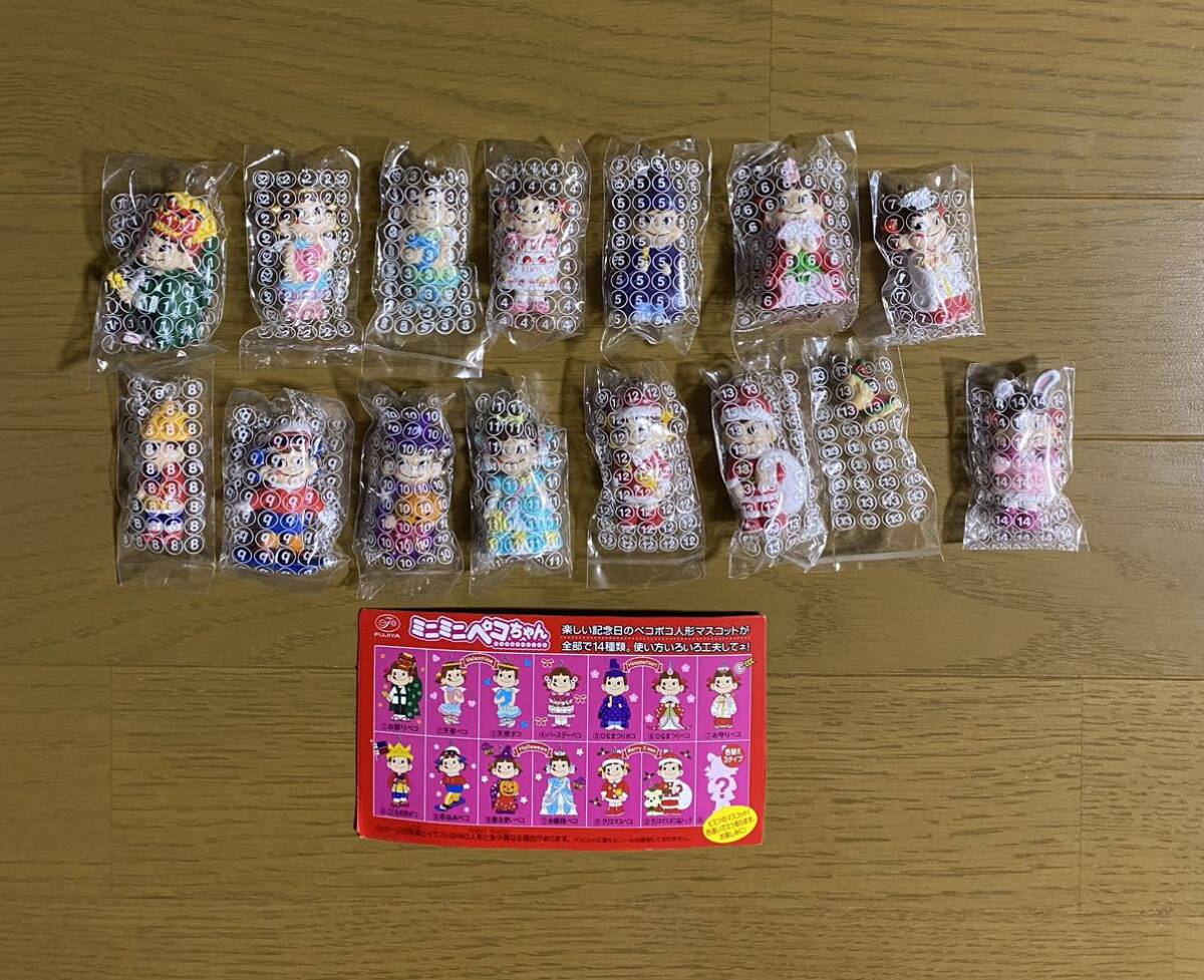 【1】「ミニミニペコちゃん」全13種+No.14シークレット(ピンク)→当時購入した食玩を長期保管していたビニール未開封・未使用品のコンプリートセット+シークレットフィギュアになります。