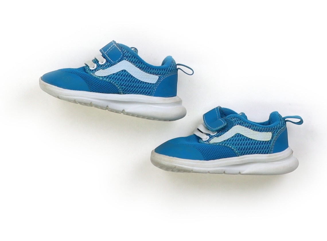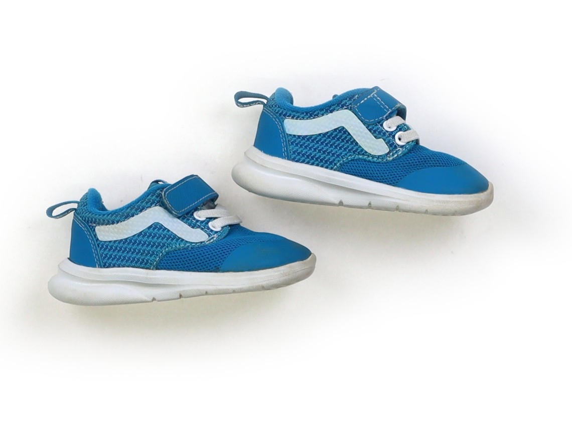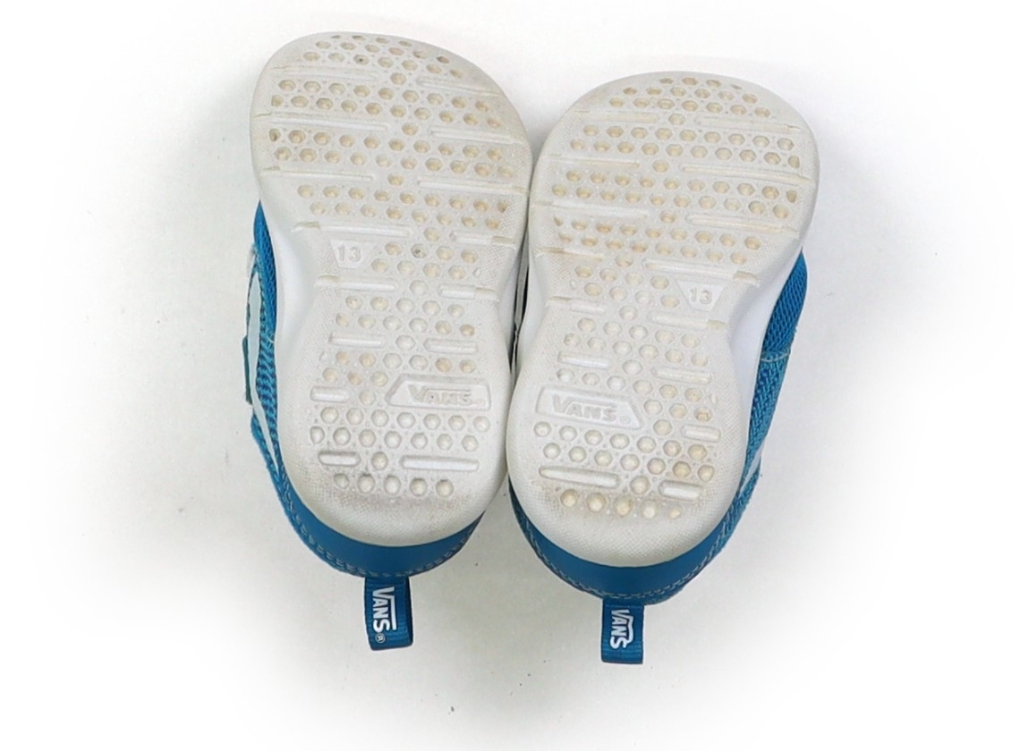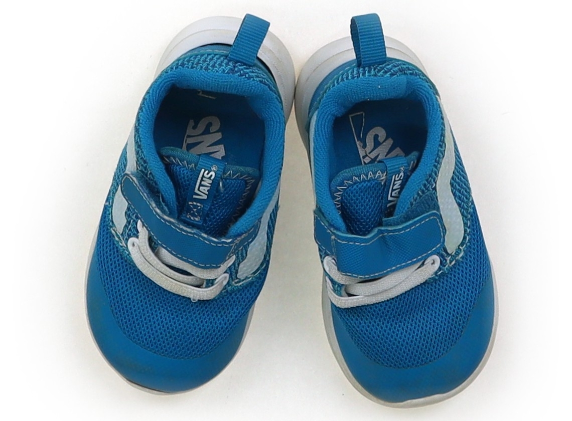 全体に白っぽいスレや、サイドデザインのラインに黄色っぽい汚れがあります。マジックテープ式。履き口に少し毛玉。メッシュ素材です。中敷きのロゴプリントが剥がれかけています。ソールの減りはあまりありません。普段使いにいかがでしょうか。実際のサイズ表記は13?。