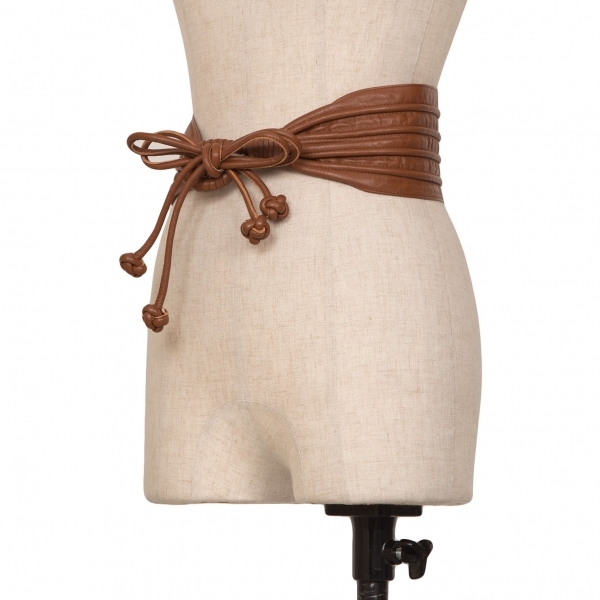 イッセイミヤケISSEY MIYAKE レザーストラップデザインベルト キャメル |
