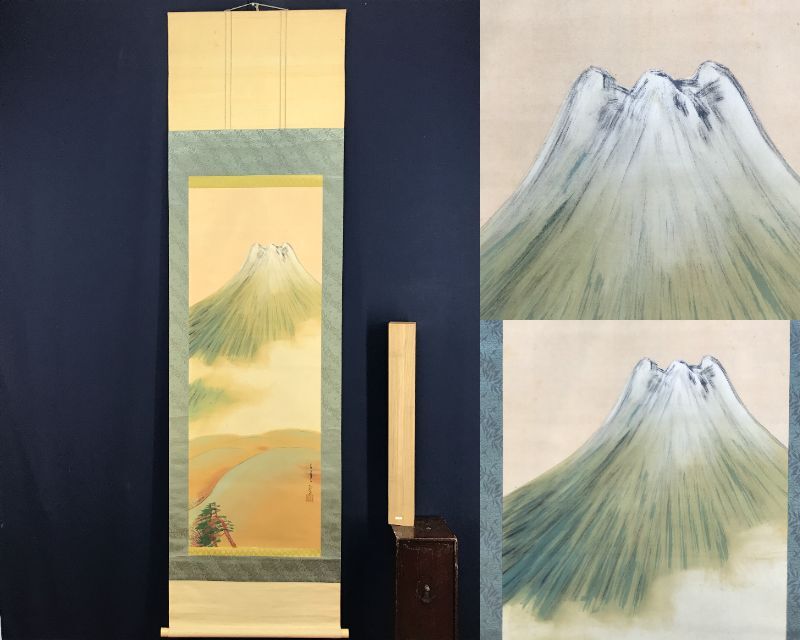 真作/溝部有巣/富士山図/山水図/富嶽図/富岳図/富峰図/掛軸☆宝船☆AF-130