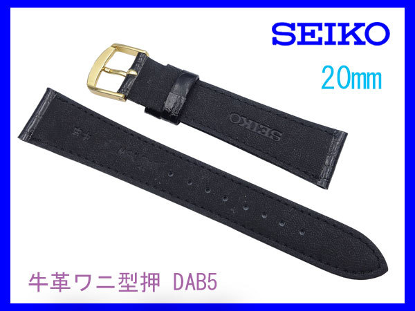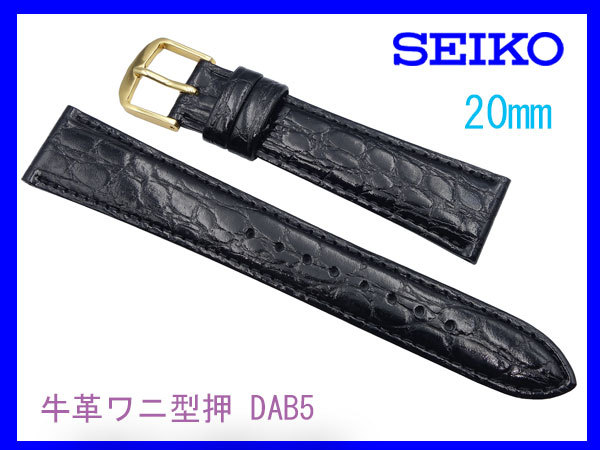 20mm セイコー SEIKO DAB5 牛革ワニ型押(ステッチ付) 黒 腕時計 ベルト 新品 未使用 正規品