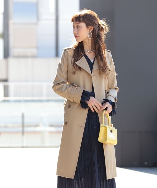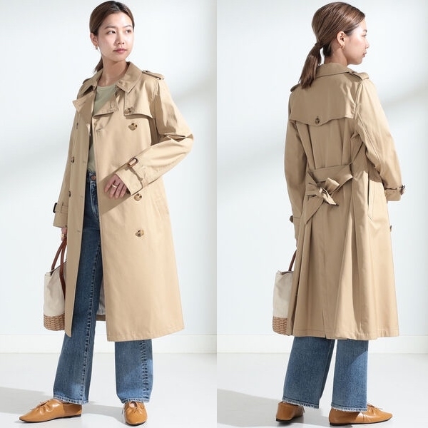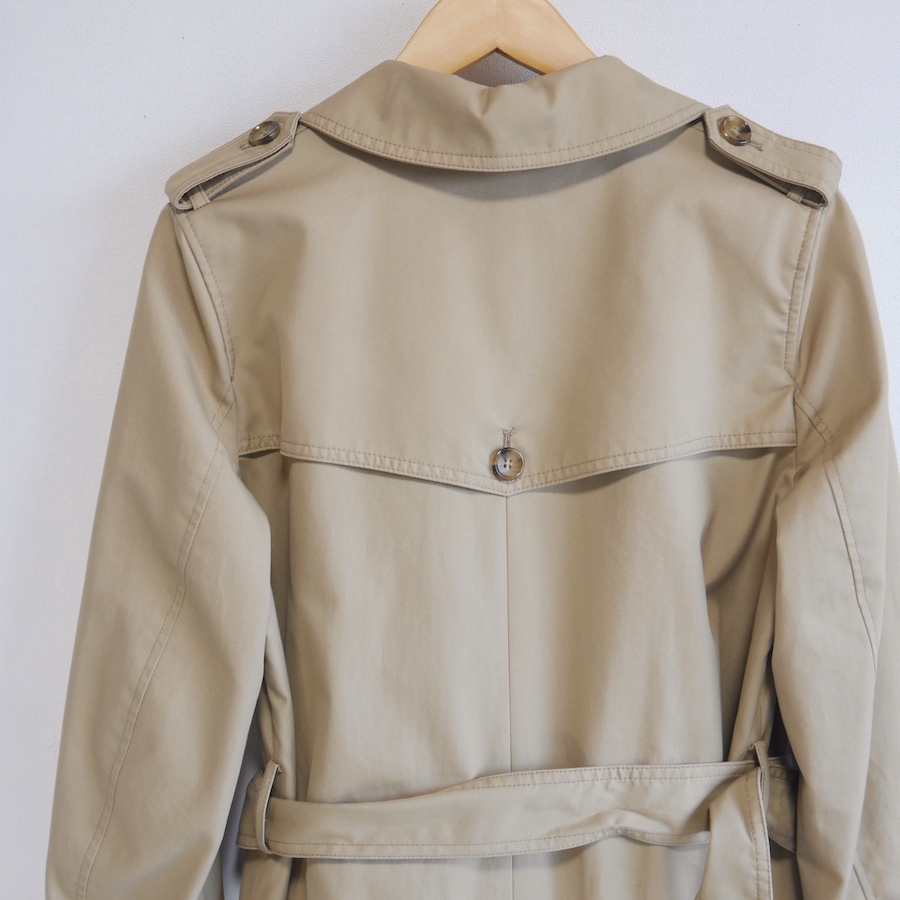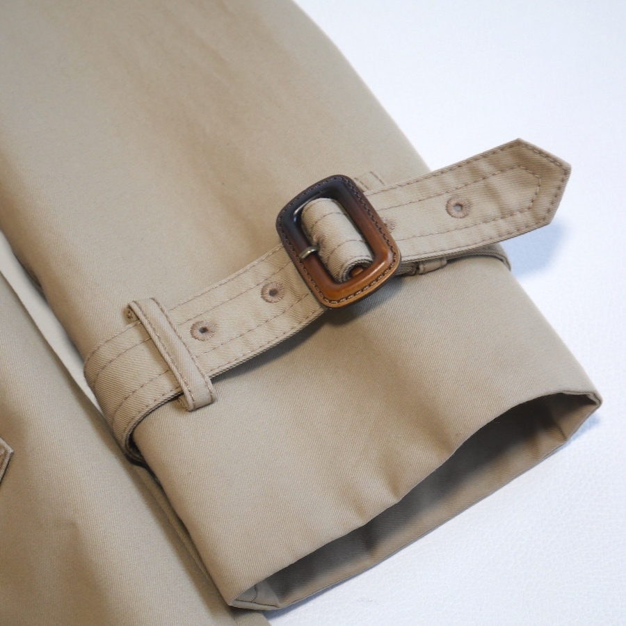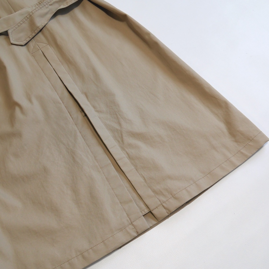 きれいめにもデイリーにも着回せる定番のトレンチコート。 しなやかで柔らかな風合いが特徴のハイカウントのコットンツイル地を使用。さりげなく光沢感が感じられる生地はクリーンできちんとした印象を与えてくれます。首に沿うような襟の形が高級感漂うデザインに。 ボトムス、インナー選ばないベーシックアイテムです。 定価29700円です。