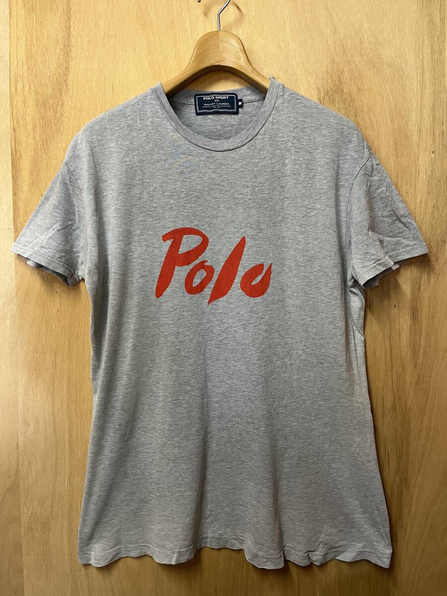 | 古着 90s POLO SPORT ポロスポーツ ロゴプリント 半袖 Tシャツ グレー サイズM 雰囲気系 フェード | ||