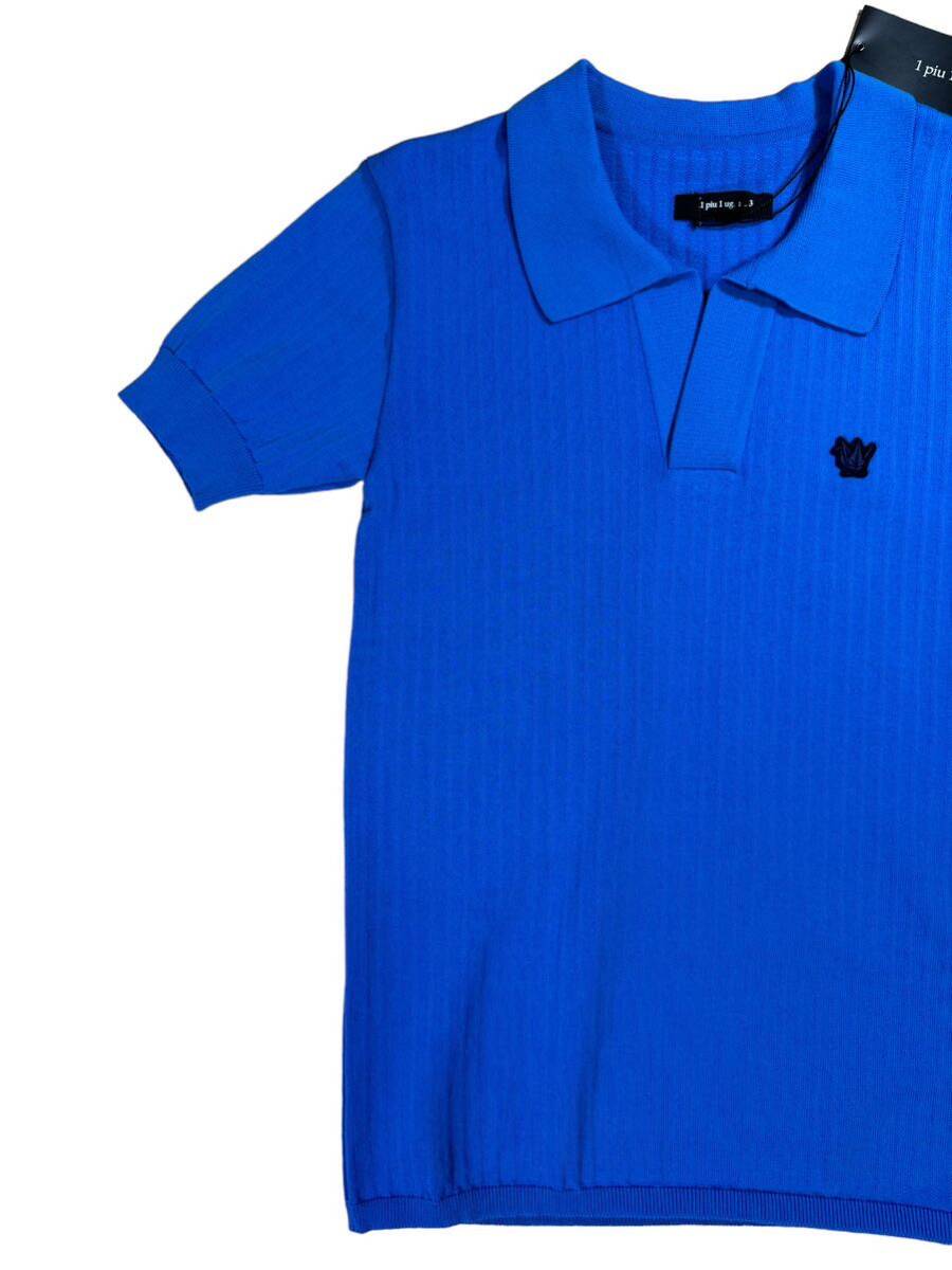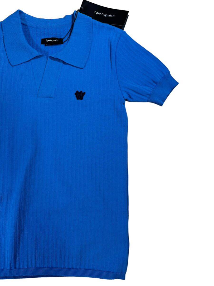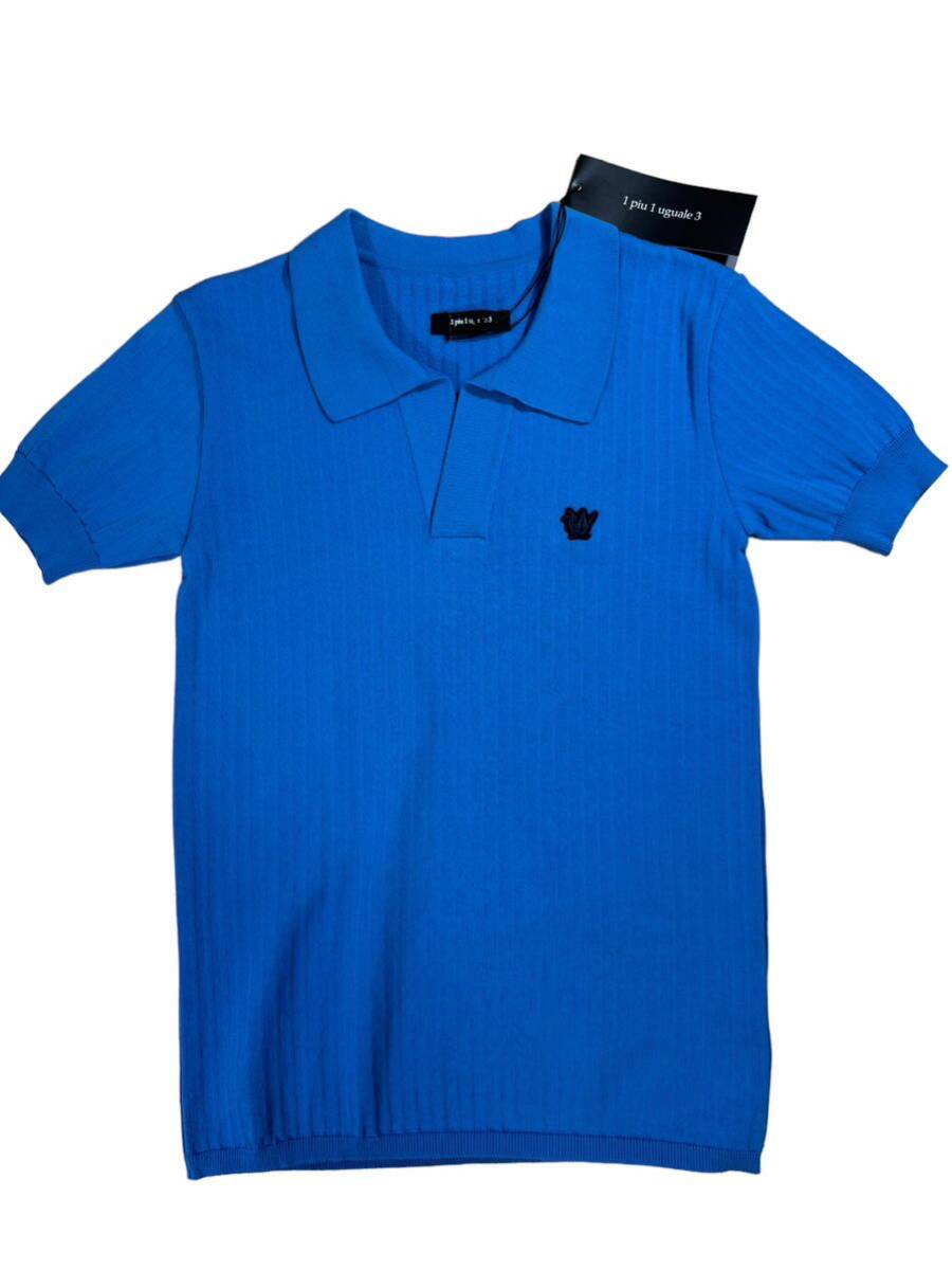 【新品タグ付】ウノピュウノウグァーレトレ1piu1uguale3 スキッパーニット半袖ポロシャツ[MRK175-CTN050](ブルー/サイズ4)
