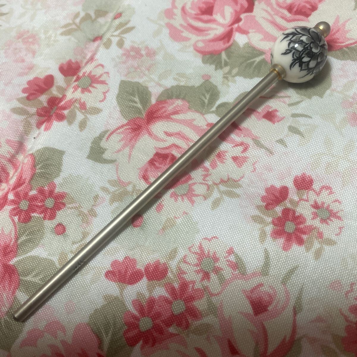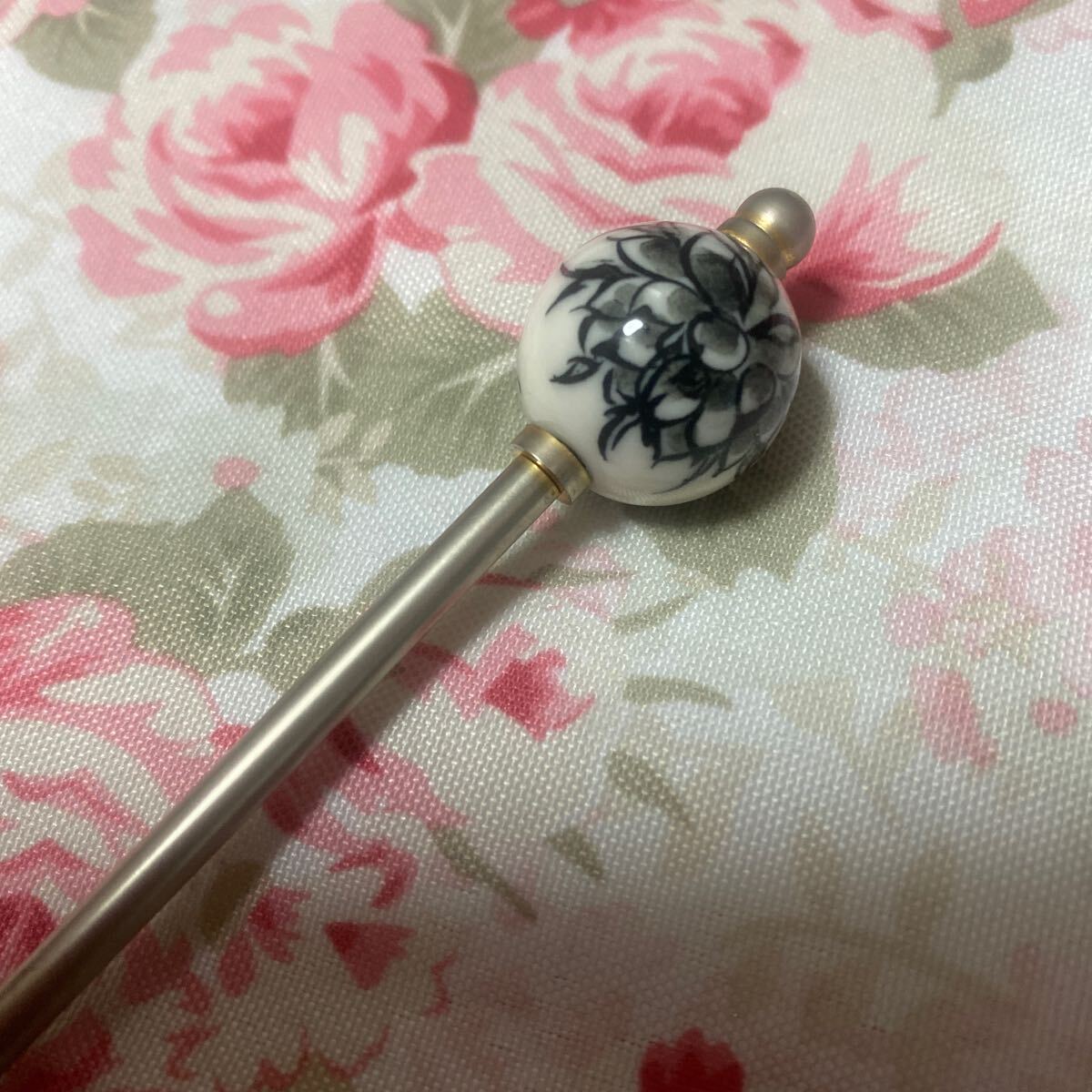 かんざし屋wargo 廃盤品プレミア かんざし とんぼ玉?陶器? 菊