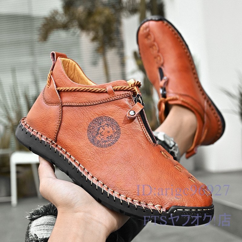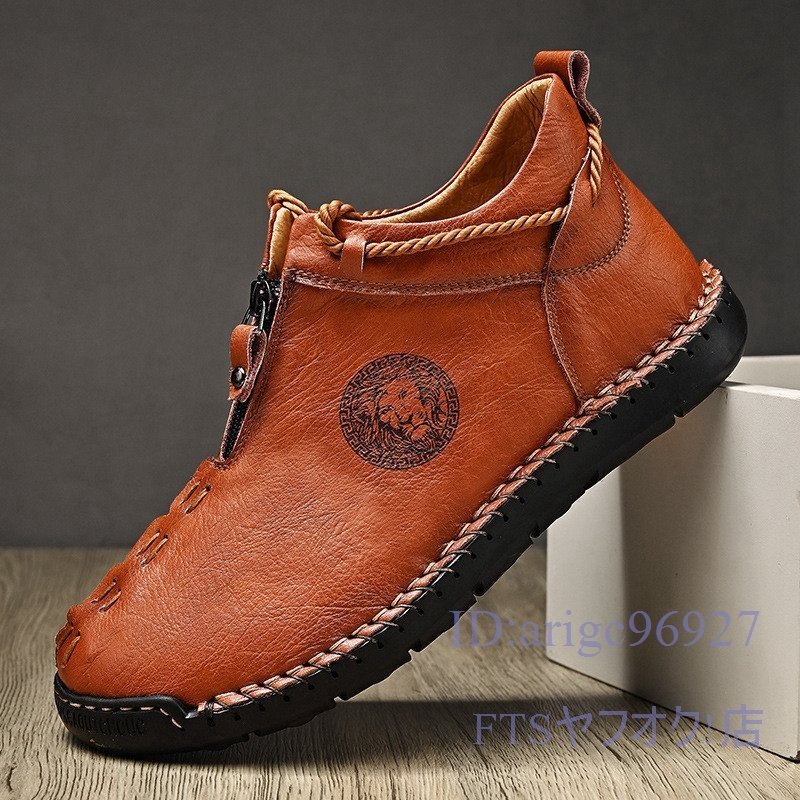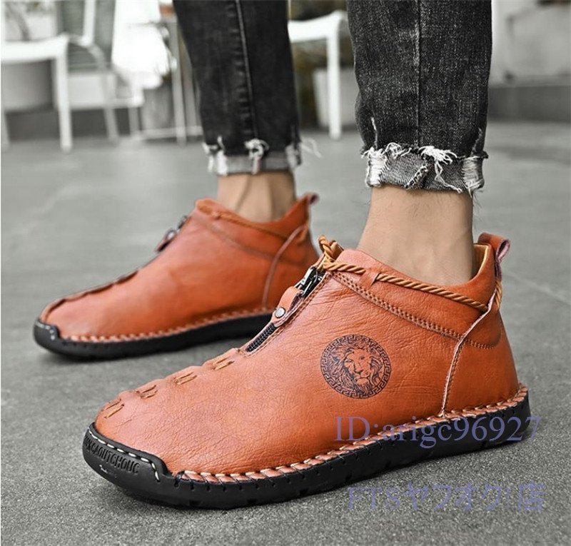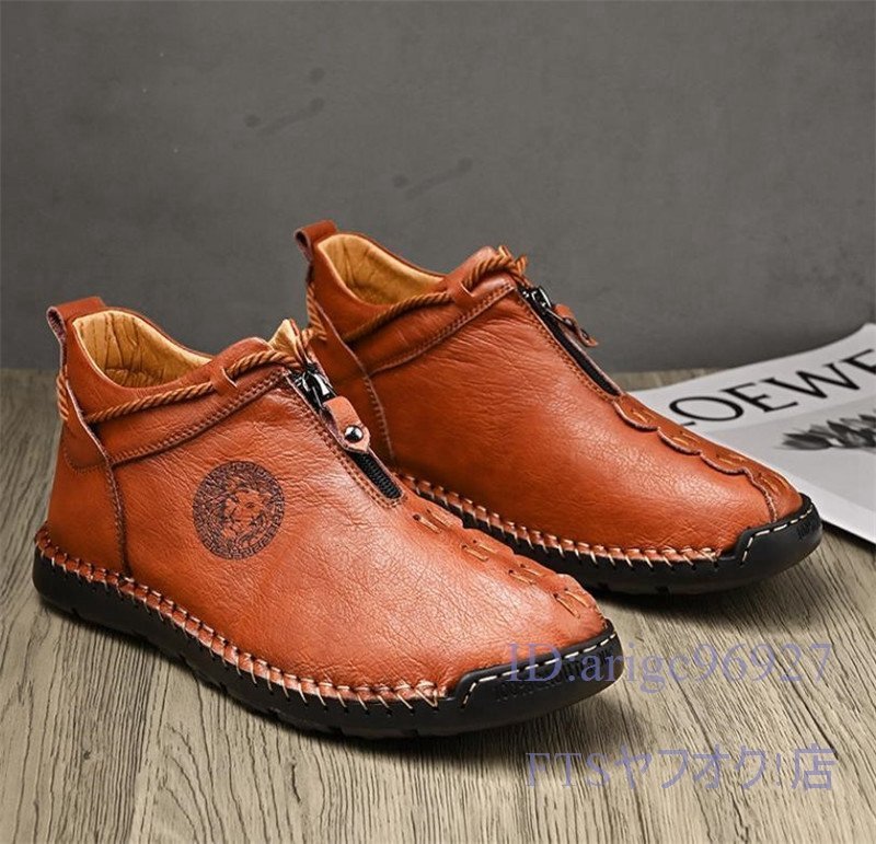 U045☆新品マーティンブーツ スリッポン スニーカー ドライビングシューズ ショートブーツ メンズ 春秋靴 カジュアル ブラウン 27.5cm