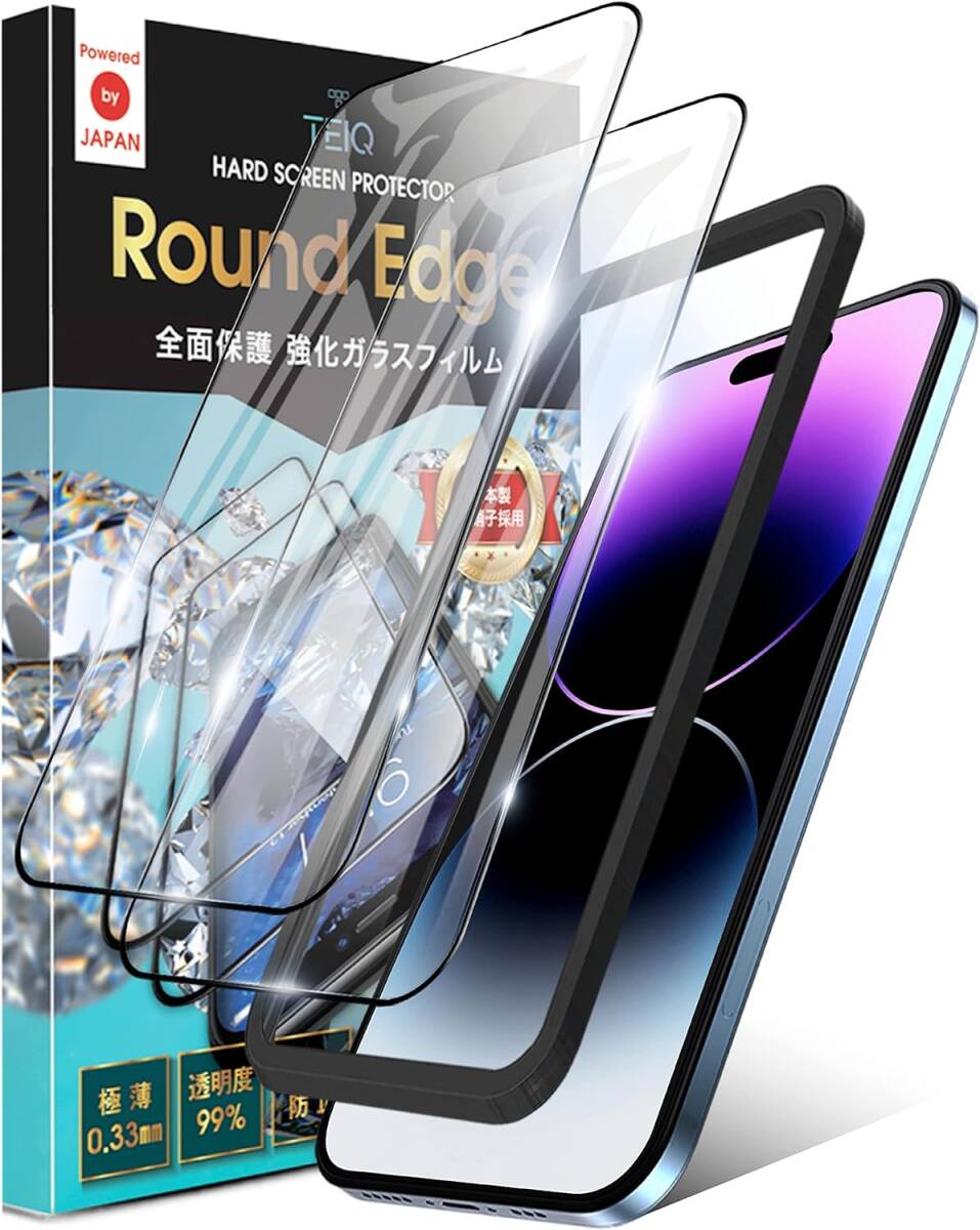 TEIQ ガラスフィルム iPhone14Pro 硬度10H 日本製旭硝子 強化ガラス フィルム ガイド枠付き 2枚セット iPhone 14 Pro 対応 GF-13-D/846