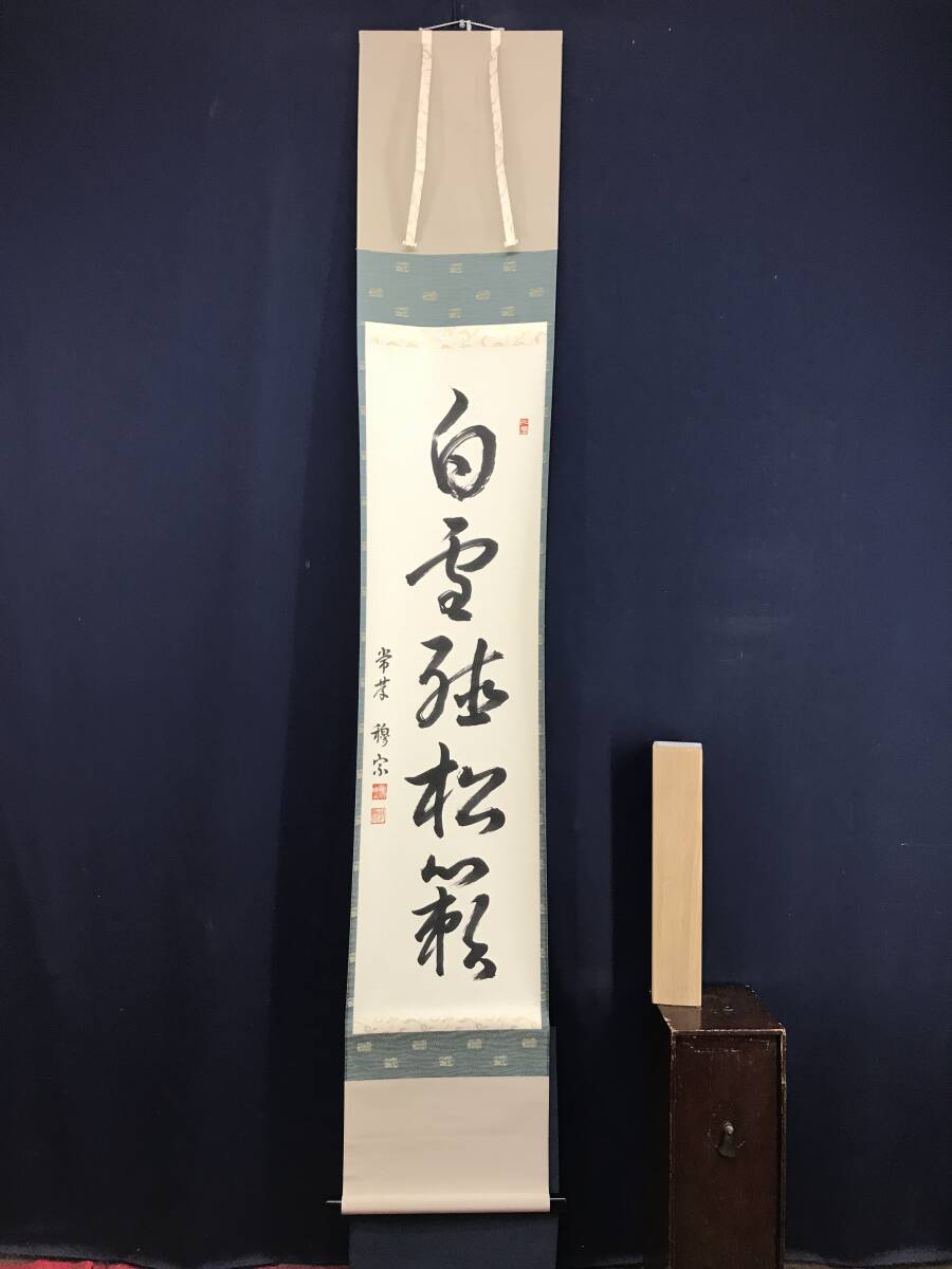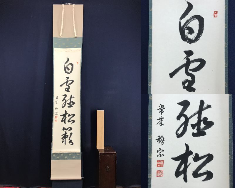 真作/穆宗和尚/一行書/白雪聴松籟/茶道具/茶掛/禅語/掛軸☆宝船☆AF-178