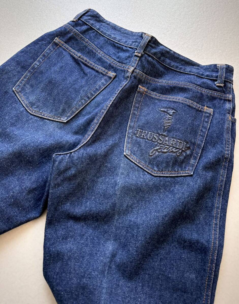 80s-90s MADE IN ITALY “ TRUSSARDI JEANS ” 5PKT INDIGO DENIM OLD VINTAGE 。