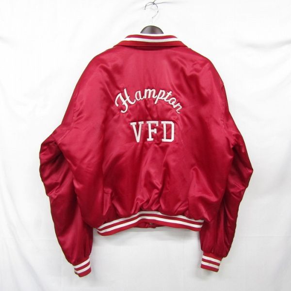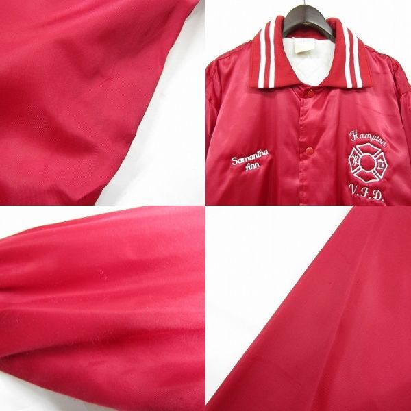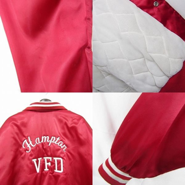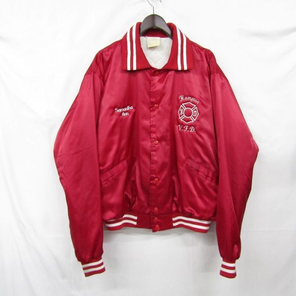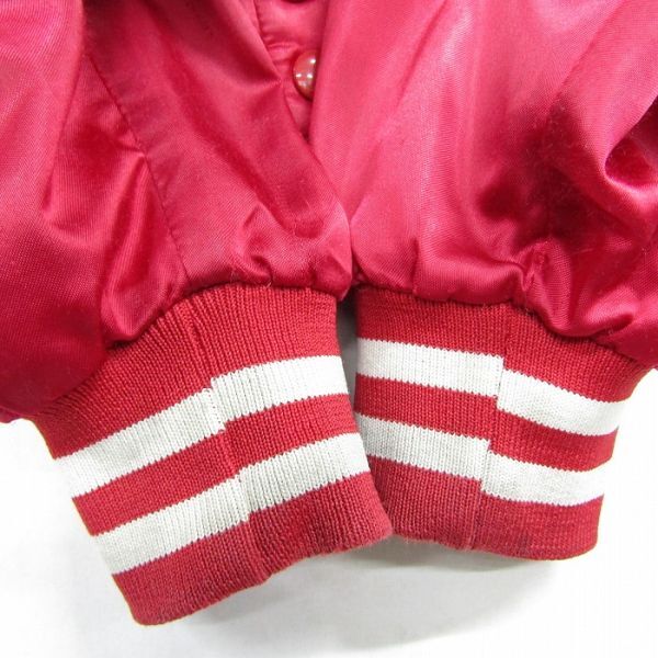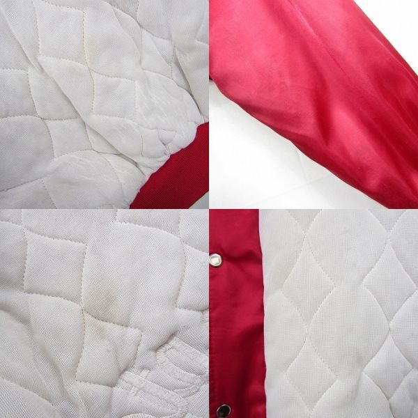 USA製 サイズ XL 程度 スタジアム ジャンパー ナイロン ジャケット スタジャン 中綿 企業系 刺繍 レッド 古着 ビンテージ 3MA2303