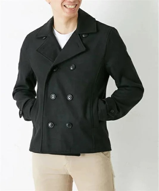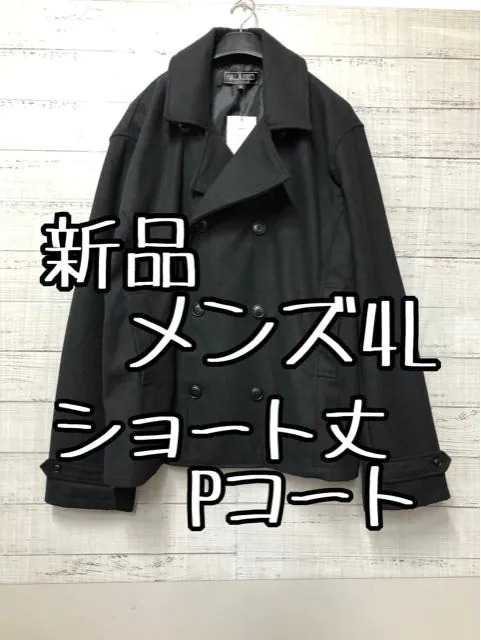 新品☆メンズ4Lトールサイズ♪黒系♪ショート丈のPコート☆e356