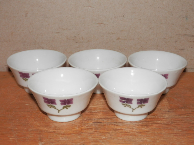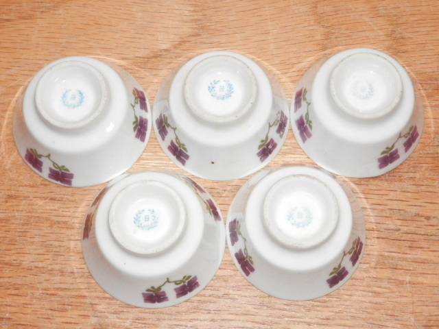お猪口 5点セット 月桂樹に日マーク 陶器(検索 昭和レトロぐい呑み日本陶器会社ノリタケ類似品