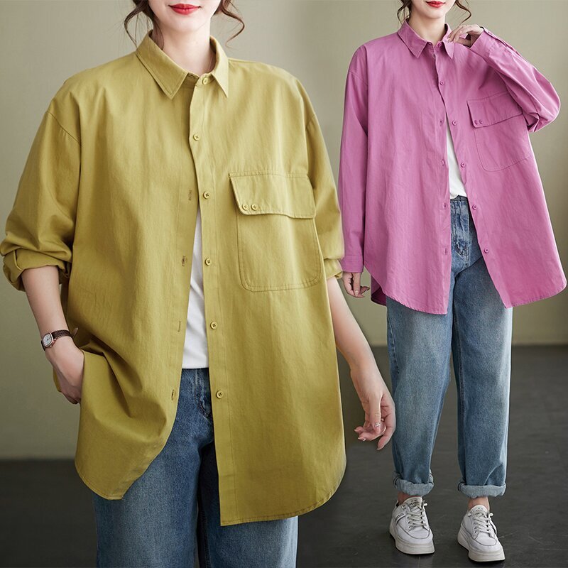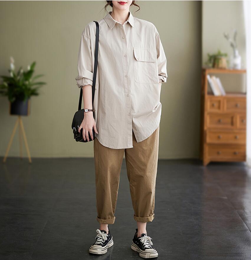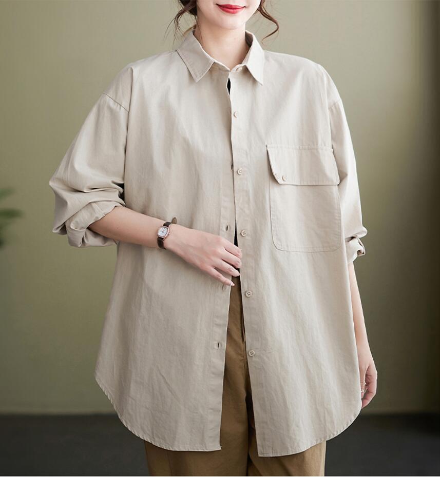 春新作 チュニック ロングシャツ レディース 長袖 ロング ブラウス シャツ カジュアル キレイめ 大きいサイズ ゆったり トップス / 杏