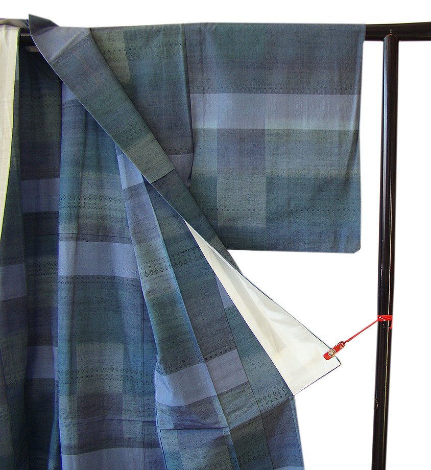 商品説明 | こちらのお品は「単衣」ですので5月、6月、9月にお召頂ければと思います。 着物には、大きく分けて「袷(あわせ)の着物」と「単衣(ひとえ)の着物」と「夏着物」があります。 反物(表地)を着物に仕立てるときに、裏地類をつけるものを袷の着物、 つけないものを単衣の着物と呼び、胴裏や八掛といった裏地がつかない一枚ものの着物です。 また裏地がないため、座る時などにヒップのラインが目立たないよう、 居敷当て(いしきあて)の生地をつけることもあります。 居敷当ては付いておりません。 しなやかでさらりとして手触り良く着心地良い涼やかな風合いの十日町紬地、 紺鼠色のグラデーション系の地色に変り市松柄が洒落感高い着物姿を演出しております。 |