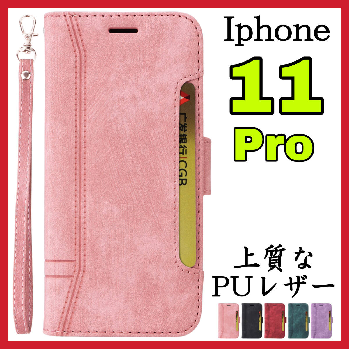 Iphone11pro用ケース 手帳型 ピンク 高級感 上質PUレザー アイホン11プロカバー ピンク スピード発送 耐衝撃 お洒落 カード収納 男女兼用 手帳型ケース スタンド機能 マグネット 軽量TPU 収納力 横置き機能 レンズ保護 落下防止 人気