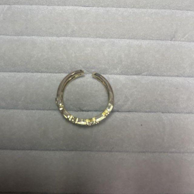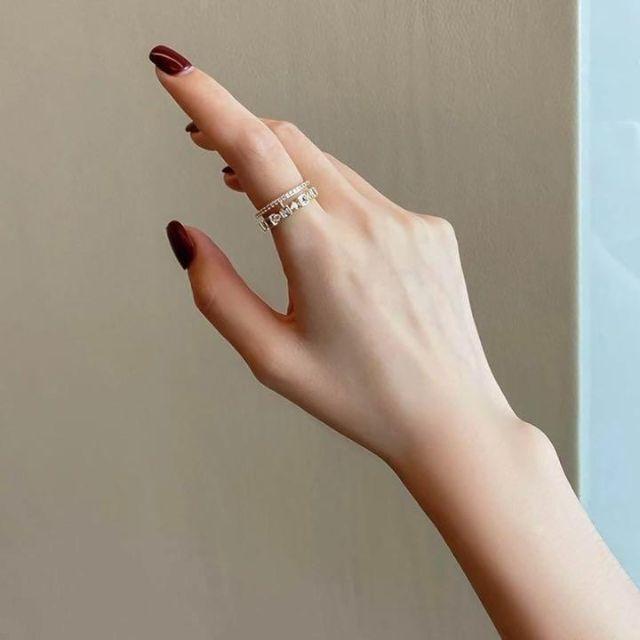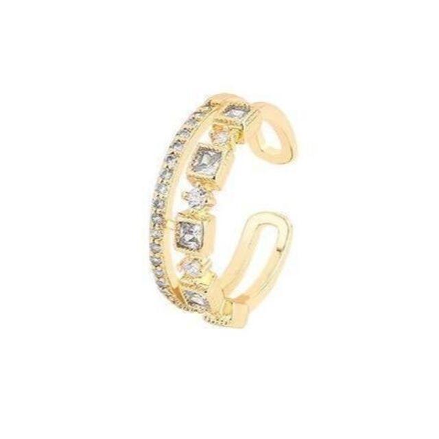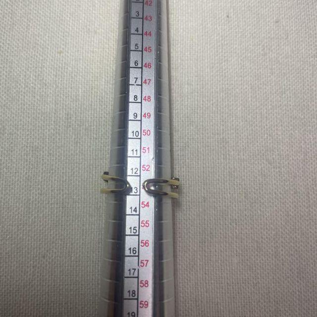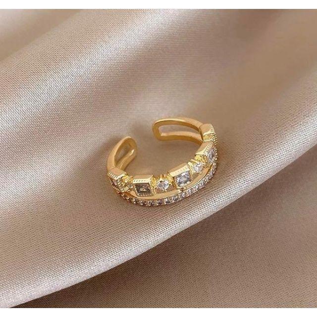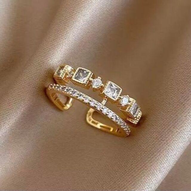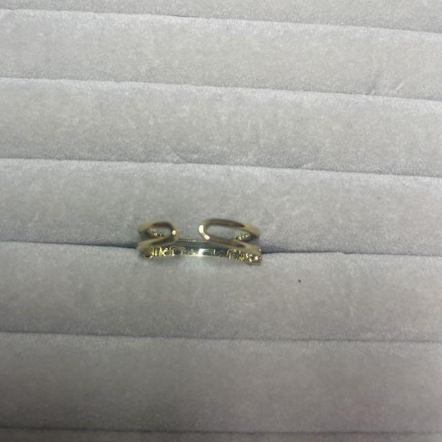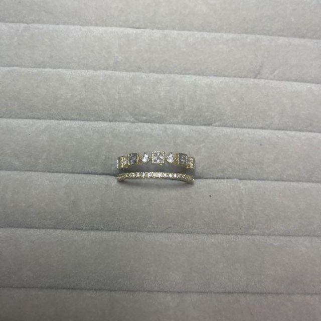 ゴールドのダブルリングになります♪リングを重ね付けしたように見えるデザインでオシャレなリングです^ ^