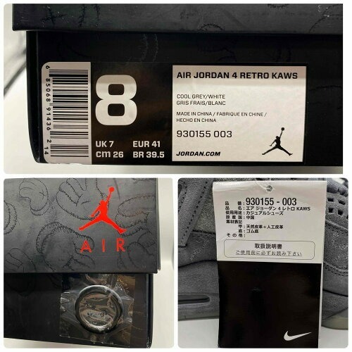 | NIKE 17ss AIR JORDAN 4 RETRO KAWS 26.0cm 930155-003 ナイキ×カウズ エアジョーダン4レトロになります。 ■ブランド:NIKE ■品番:930155-003 ■カラー:グレー ■付属品:画像参照 ■状態:未使用品になります。シューキーパーが片方しかございません。 ■定価 |