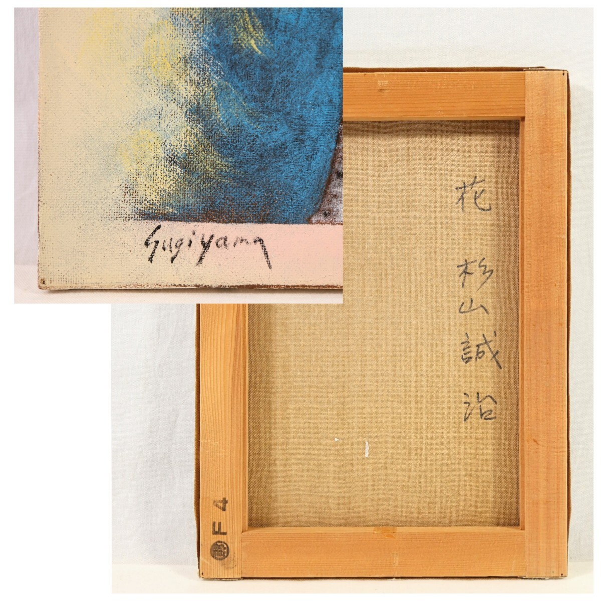 真作 杉山誠治 油彩「花」画寸 24cm×33cm F4 岐阜県出身 應美会会員 静物画を得意とし情感豊かに花を描く 幻想的な雰囲気が魅力的 8953