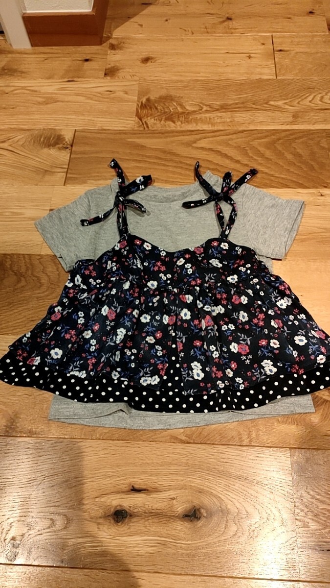アプレレクールの半袖とビスチェの2点セットの出品になります。単品で着てもセットで着てもかわいいTシャツです。
