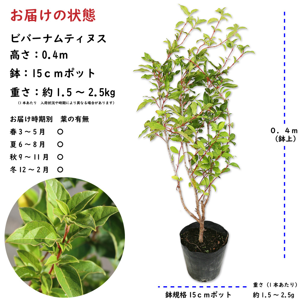 ビバーナムティヌス 0.4m 15cmポット 3本 苗