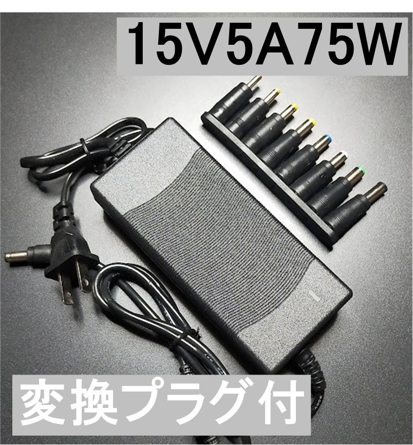 | ACアダプター 15V5A プラグ5.5×2.5/2.1mm (15V 2.5A、2A) AC/DCアダプター スイッチング電源 | |
