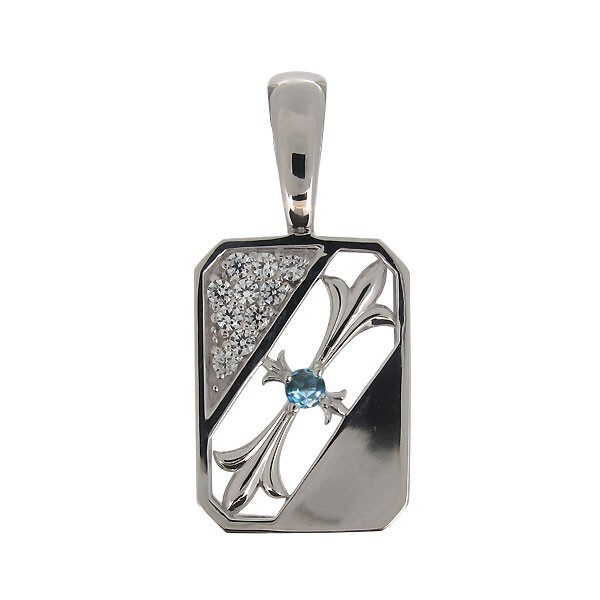 11月誕生石ブルートパーズを使用したシルバー製の、クロス(十字架)モチーフメンズペンダントヘッドです。