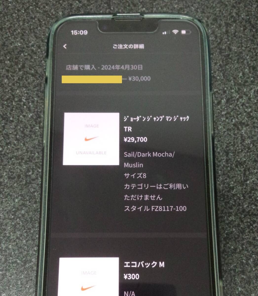 4/30にナイキ店舗(WOF渋谷)で購入したものです。