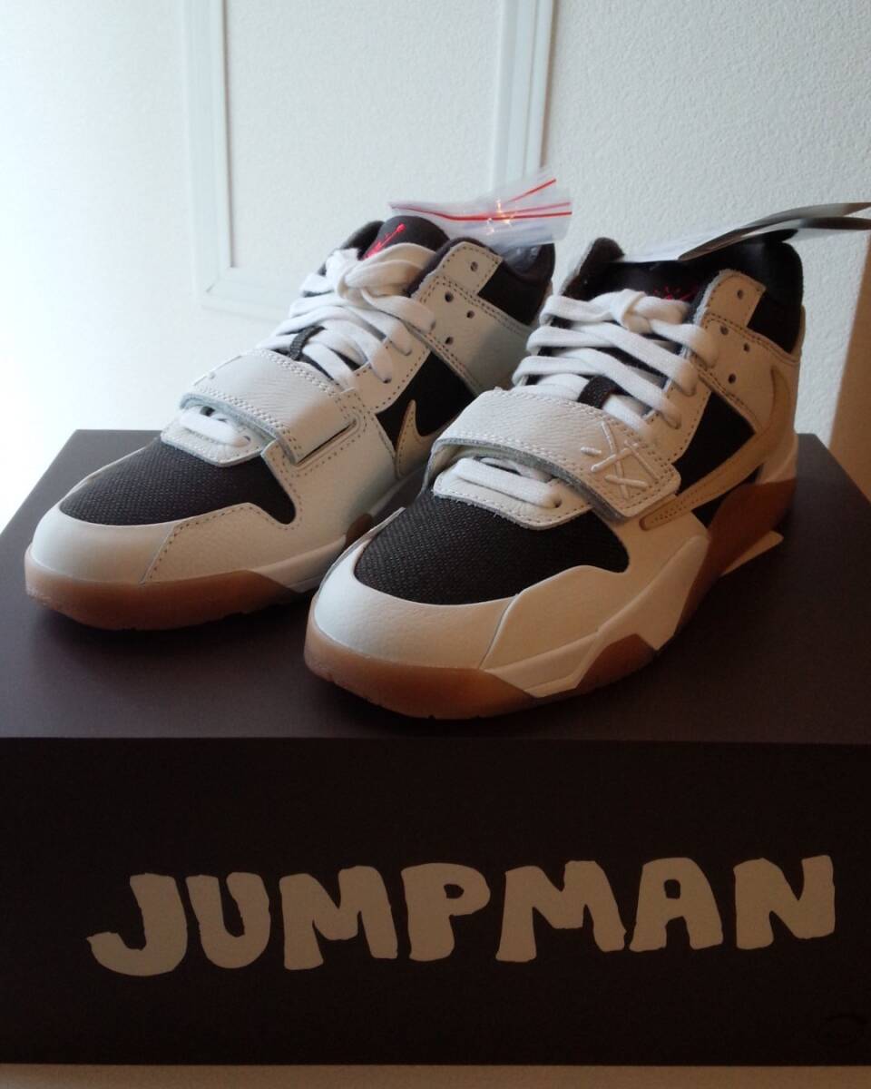 アウトソールには摩耗していく「Jack」のグラフィック、シュータンにはJumpmanの「Crown」ロゴ、ヒールにはCactus Jackのスマイリーロゴ、そしてもちろん彼の特徴的な逆向きのスウッシュも配されている。
