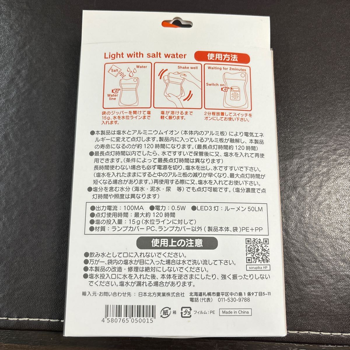 ◯防災・災害時・停電・地震時にレジャー・キャンプ・釣りに 塩と水だけで点灯