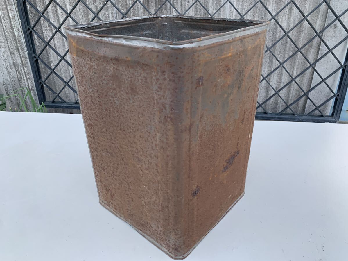 蔵出し 当時物 サビサビのレトロでジャンクな蓋付一斗缶Usedになります。