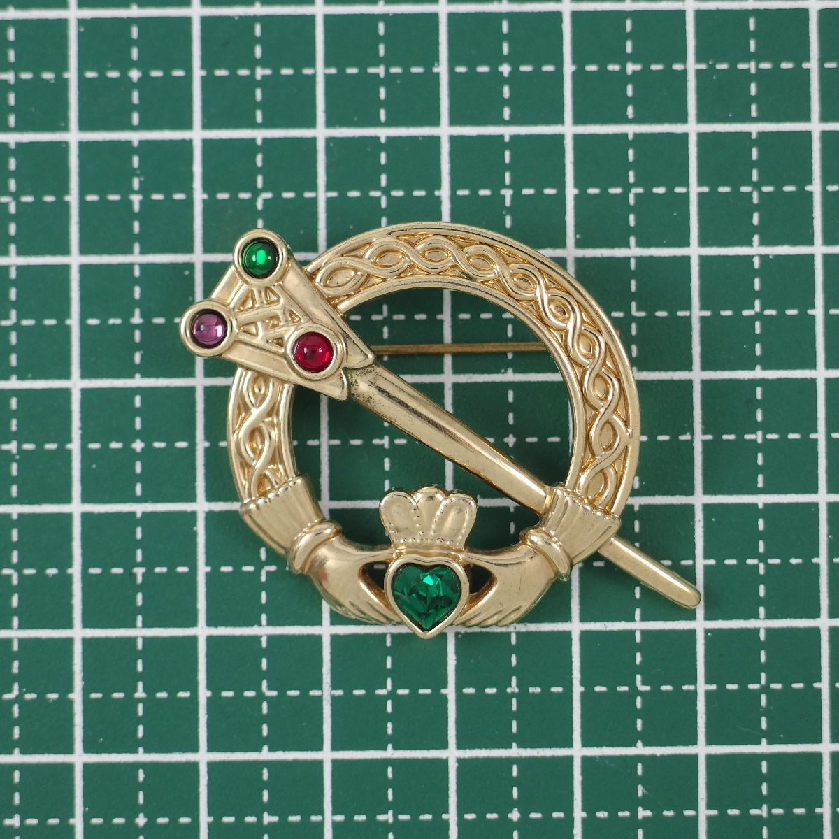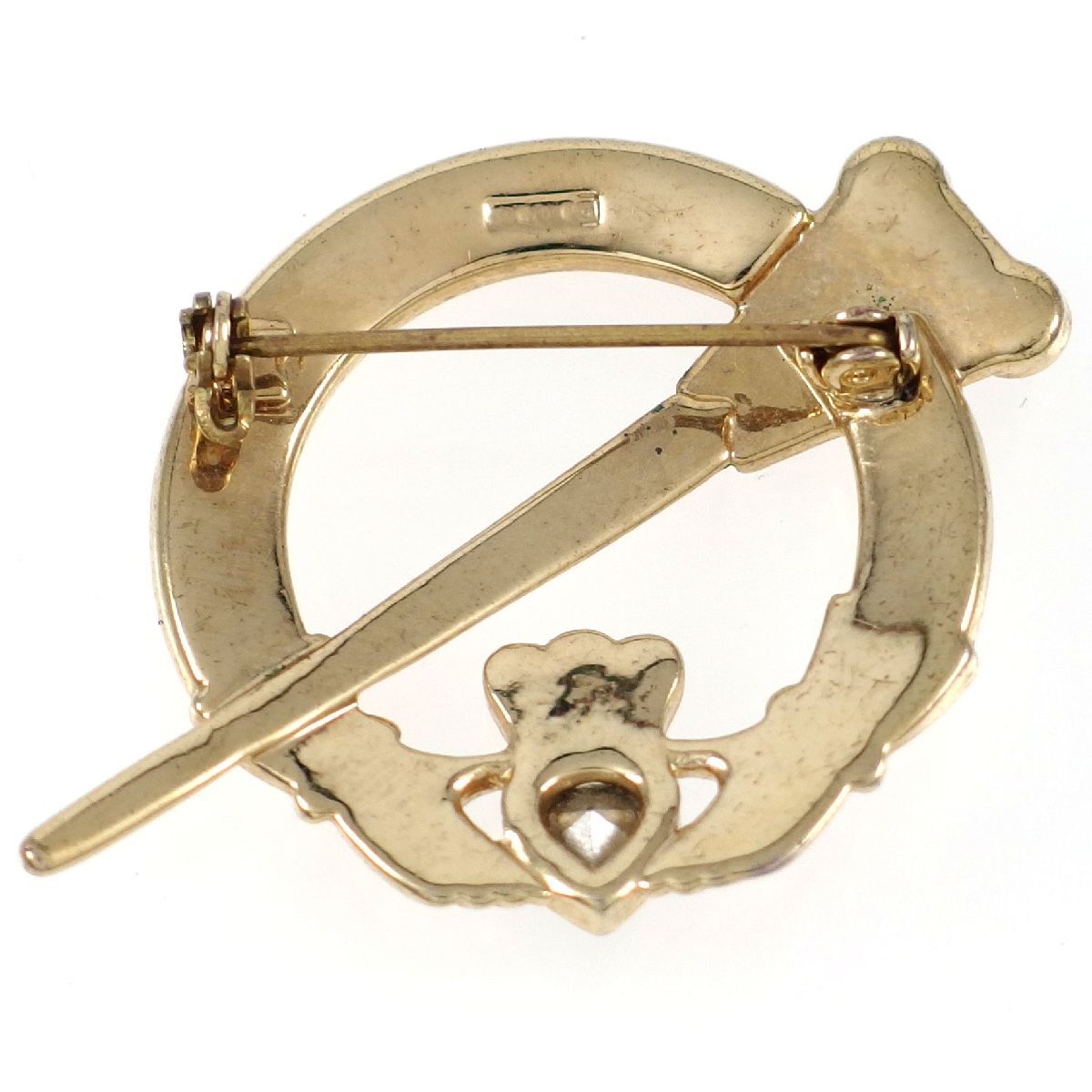 UK1693◆【刻印付き】◆ ハートを持つ手 クラダ ソード 剣 ケルト イギリス 英国 ◆ ヴィンテージブローチ ◆
