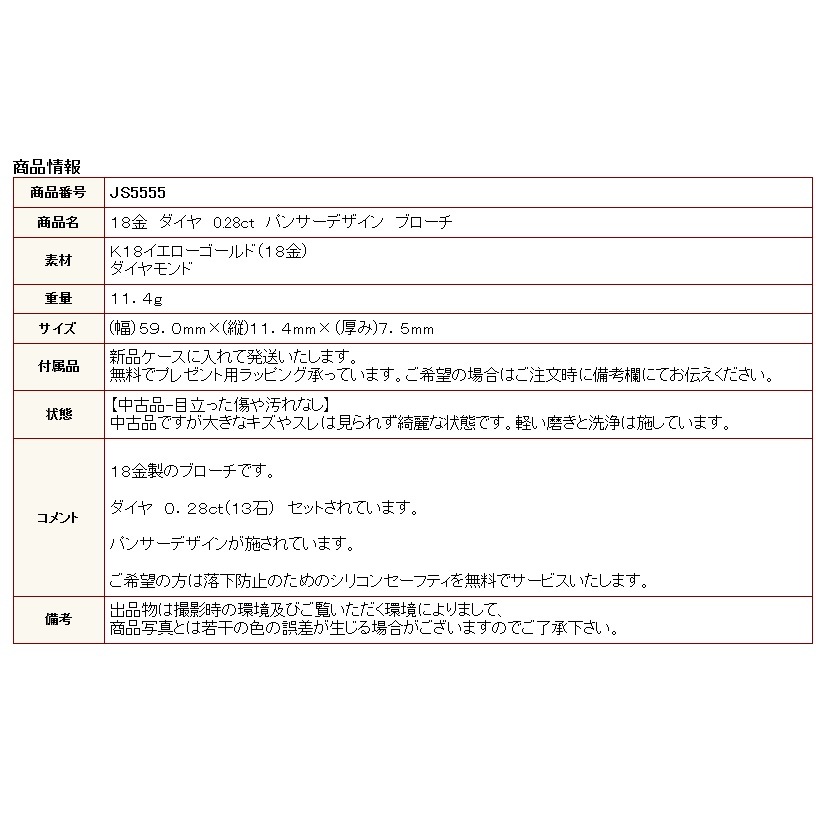 商品名 | 18金 ダイヤ 0.28ct パンサーデザイン ブローチ |