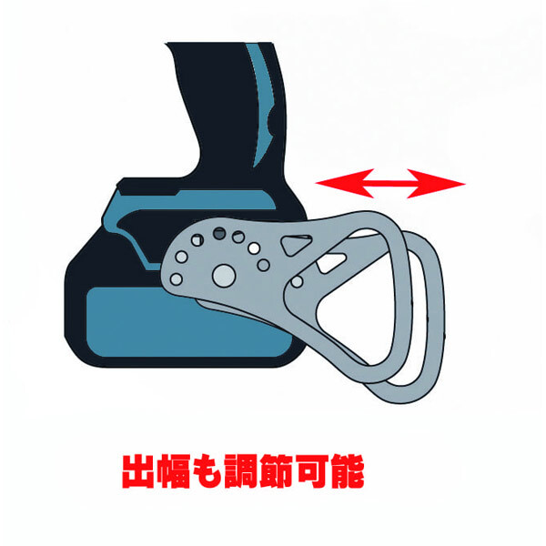 ・本体フック部の角度が数段階に調節できるので任意の角度で装着でき、腰ベルトに吊り下げた時にバランスの良い位置で固定できます。また電動工具の取付け溝が斜め向いた機種にも取付けできます。