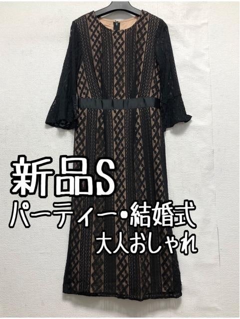 新品☆S♪黒系♪総レースワンピースドレス♪結婚式・パーティ☆b632