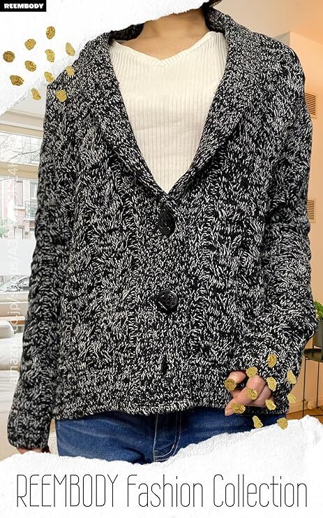 • ケーブル編みと大きめなボタンが特徴的ですごく素敵♪
