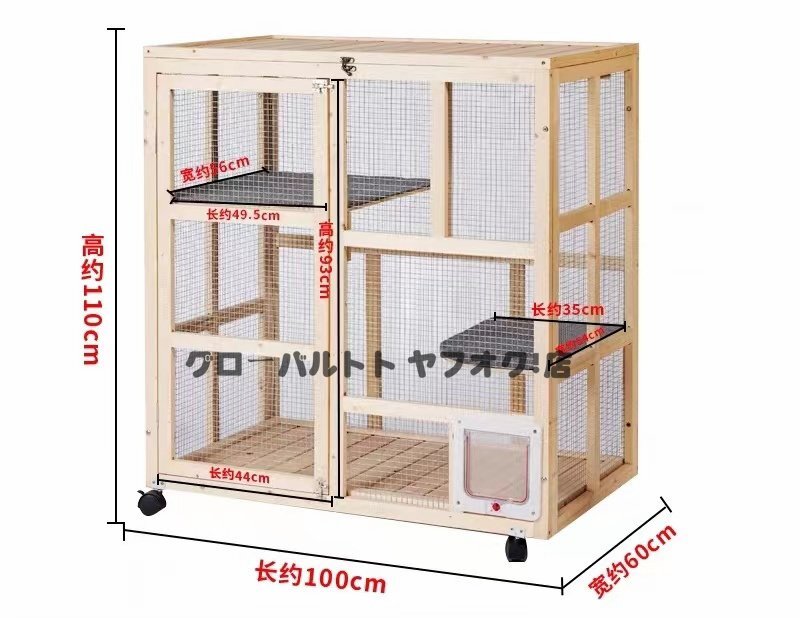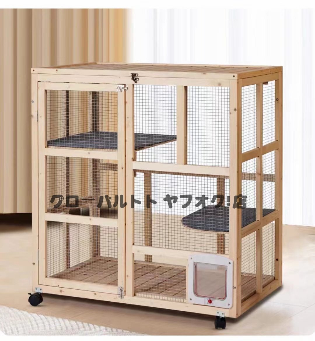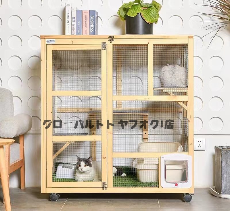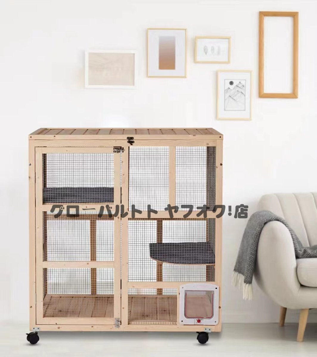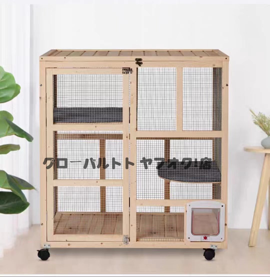 【新入荷】 猫舎別荘 上下運動でストレス解消 キャットケージ 超ビッグ 3段 ナチュラル(木製)猫ケージ 猫トイレが置けられる S352