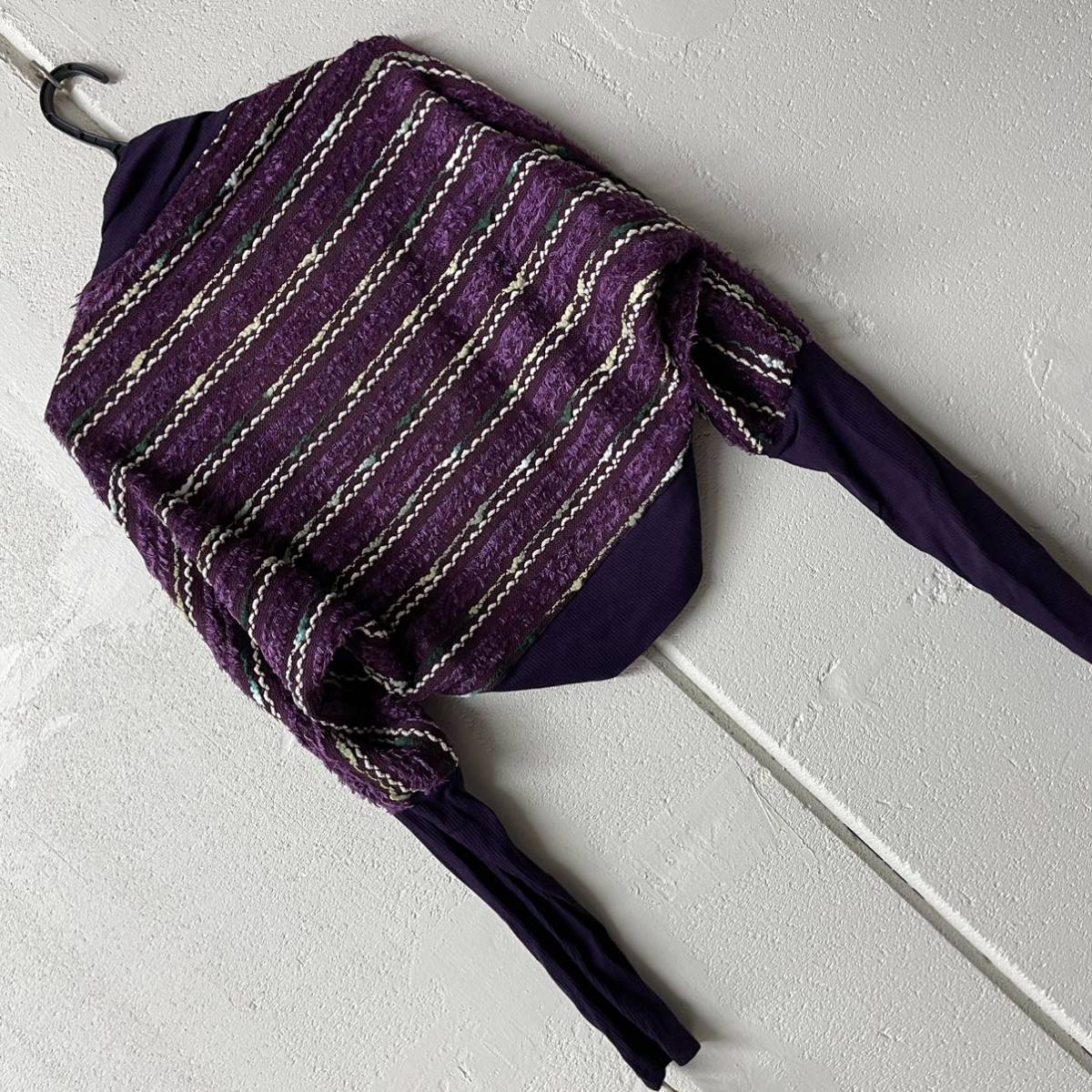 ストールポンチョ 毛糸 フリンジ使いパープル 定価6195円