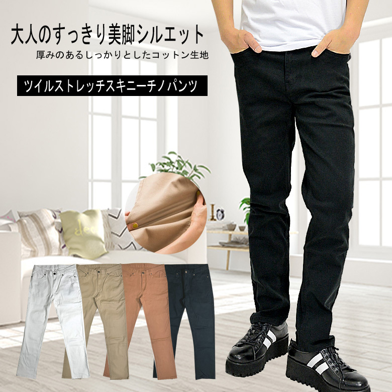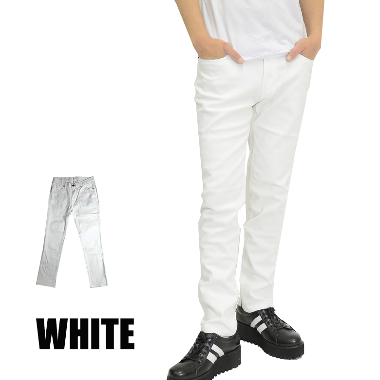 ストレッチ スキニーパンツ ストレッチ ヘビーツイル キレイめ メンズ テーパード 8002-9117 新品ホワイト XL