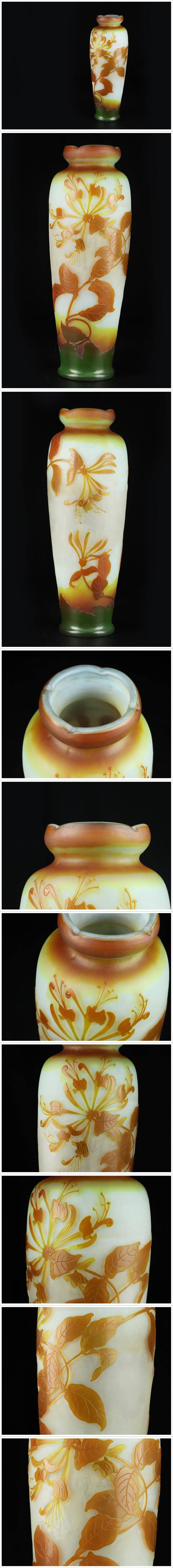 サイズ(約) 高さ 41㎝/直径 15㎝/重量 2450g 付属品 - 本物保証 傑作品 19世紀 エミール・ガレ 被ガラス アシッド 花彫文様 特大花瓶 高さ41㎝ アールヌーボー 本物保証 19世紀頃の作品になります。 被せガラスにアシッドでカメオ彫刻された幻想的な花文の美しい傑作品です。 艶のある仕上がりで非常に高級感がございます。 小傷やスレ傷がございますが、大きな傷等無く程度良品の逸品でございます。 高さ41㎝と大きく大変希少な作品です。お見逃しなく!! |