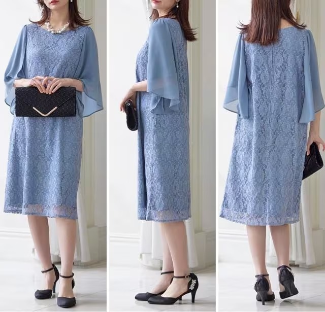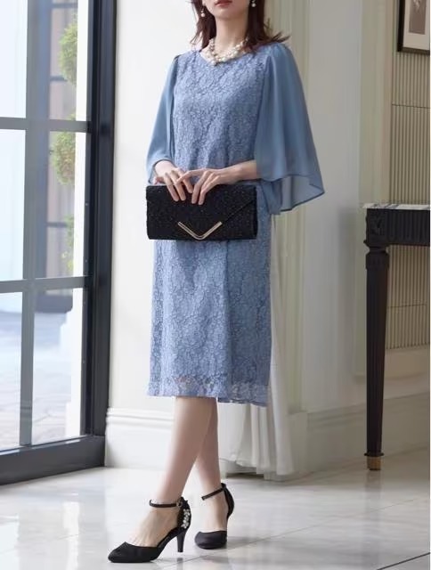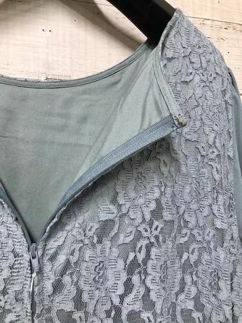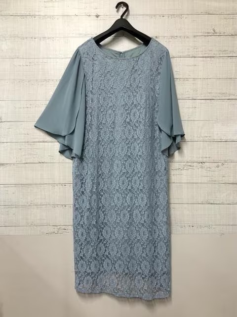 新品☆5L♪ブルーグレー系レースきれいなパーティワンピース18,590円を♪☆t484