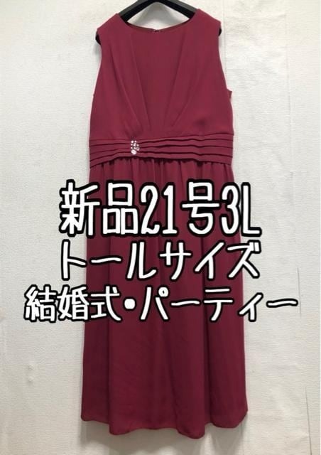 新品☆21号3Lトール♪ボルドー系♪ビジューおしゃれパーティワンピ☆b602