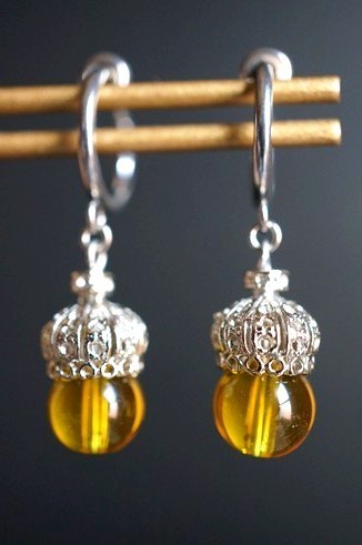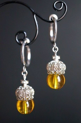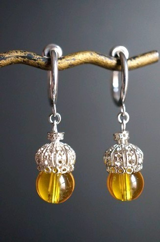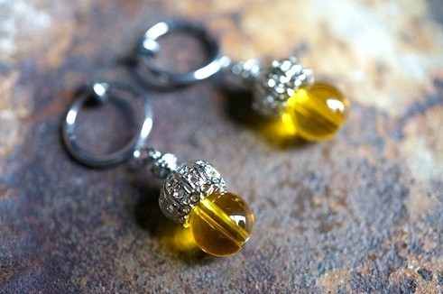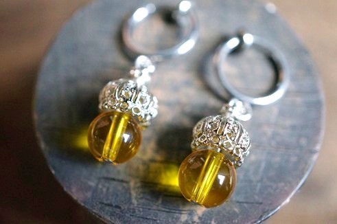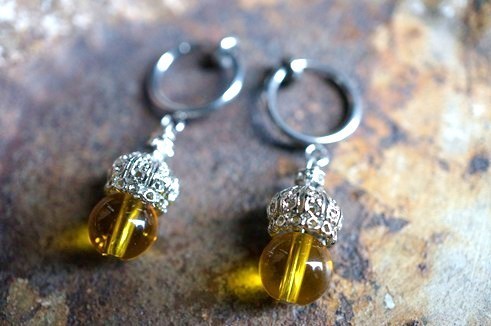 イヤリング 389 シトリン 透かしメタルのフープイヤリング サージカルステンレス 金属アレルギー対応金具使用