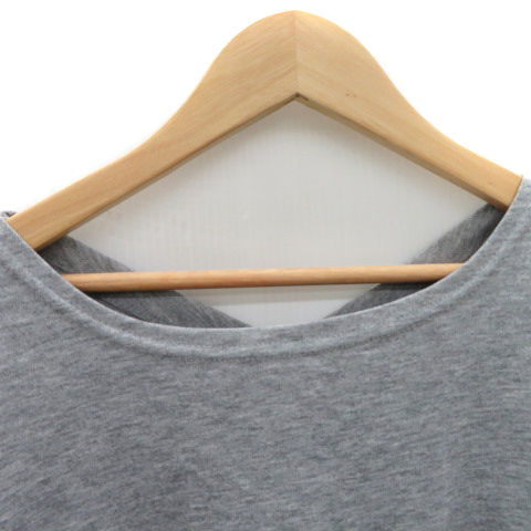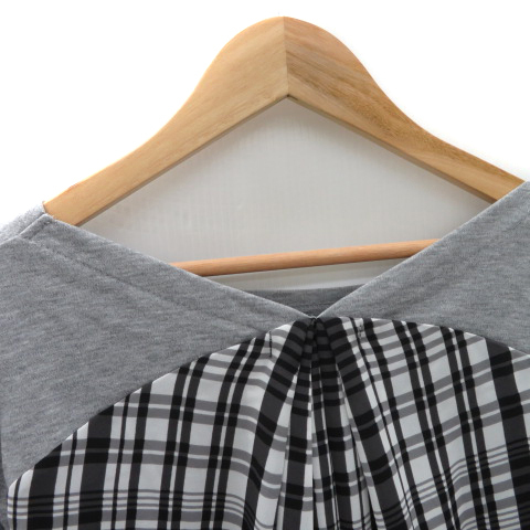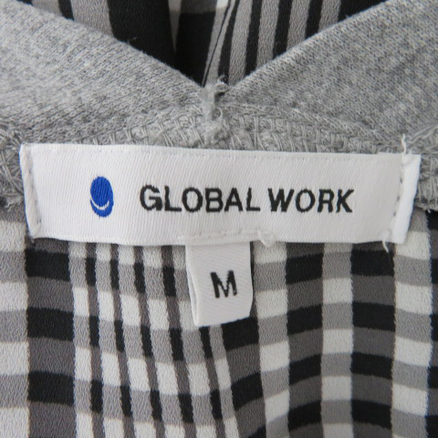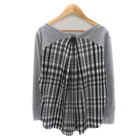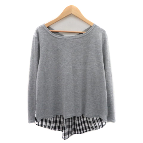 グローバルワーク GLOBAL WORK カットソー 七分袖 ラウンドネック 切替 無地 チェック柄 オーバーサイズ M グレー ■MO レディース