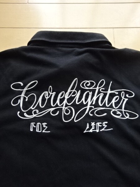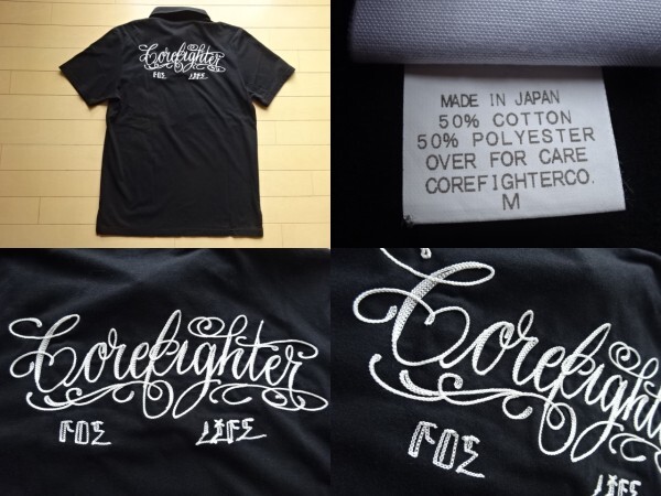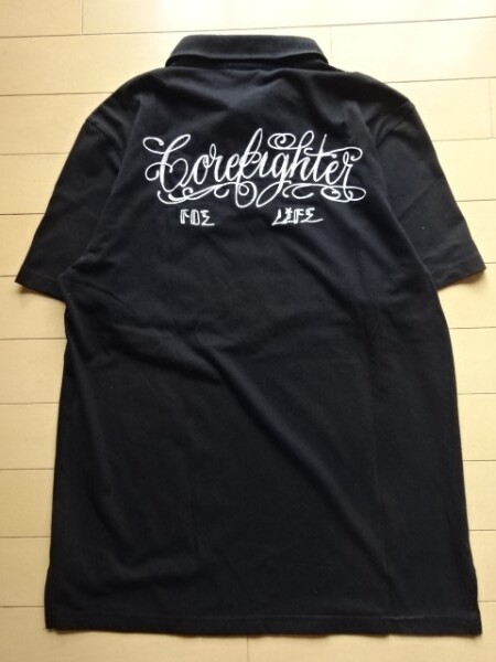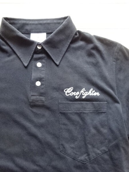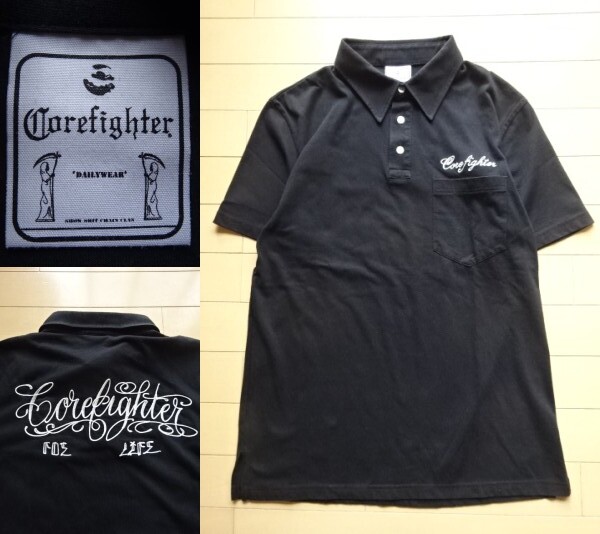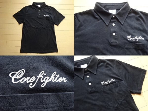 【COREFIGHTER】チェーン刺繍入り 半袖 ポロシャツ ブラック SIZE:MEDIUM (コアファイター)
