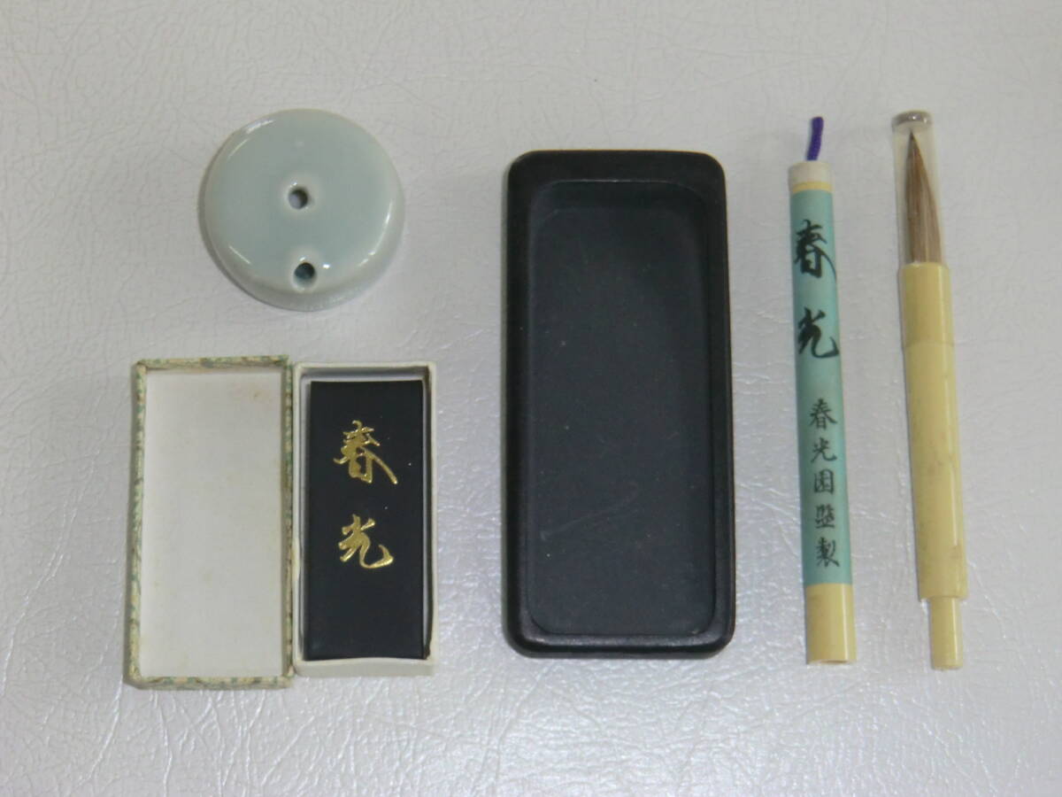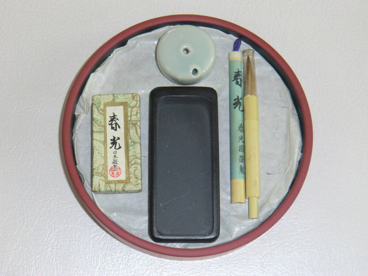 「ミニ書道セット ミニ書道道具 仙台堆朱 春光 硯箱 筆 硯 墨 水滴」です。