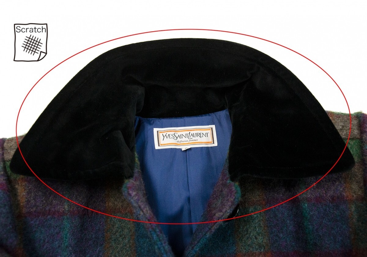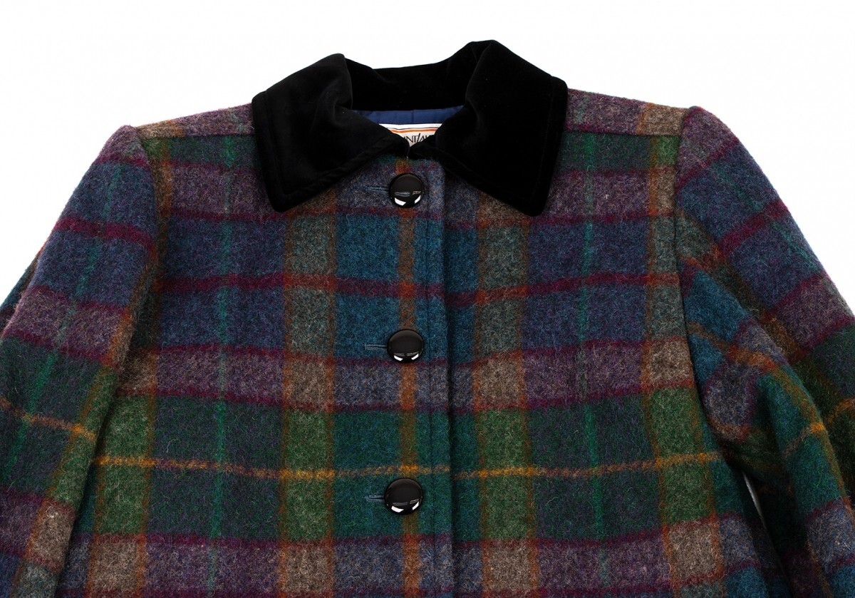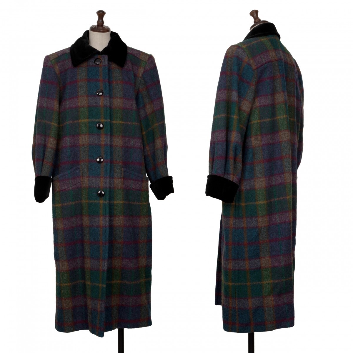 イヴサンローランYves Saint Laurent カラフルチェックベロア切替コート 黒マルチS |