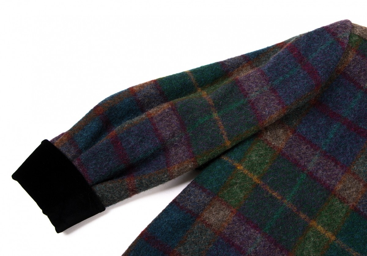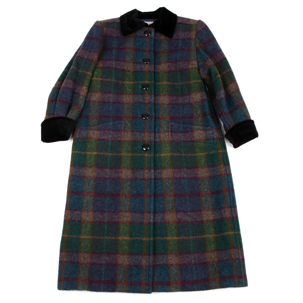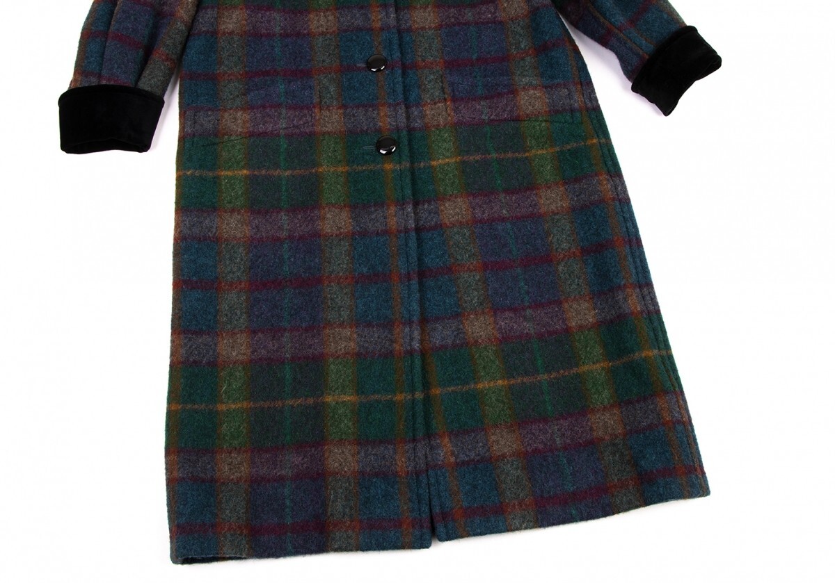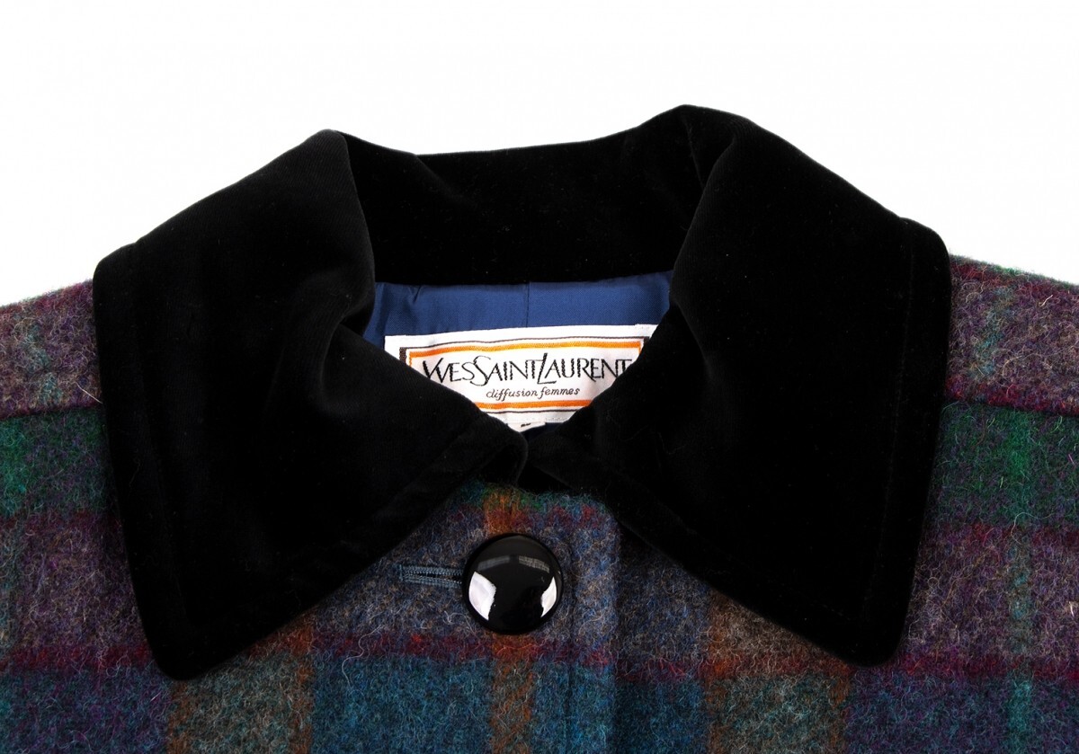 イヴサンローランYves Saint Laurent カラフルチェックベロア切替コート 黒マルチS |