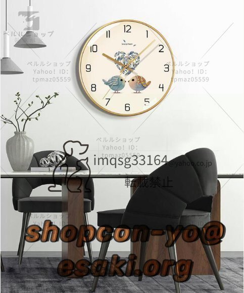 壁掛け時計 INS風 ラブバード 静音 電池式  円形時計 クロック  家庭用 アイデア ベッドルーム リビング