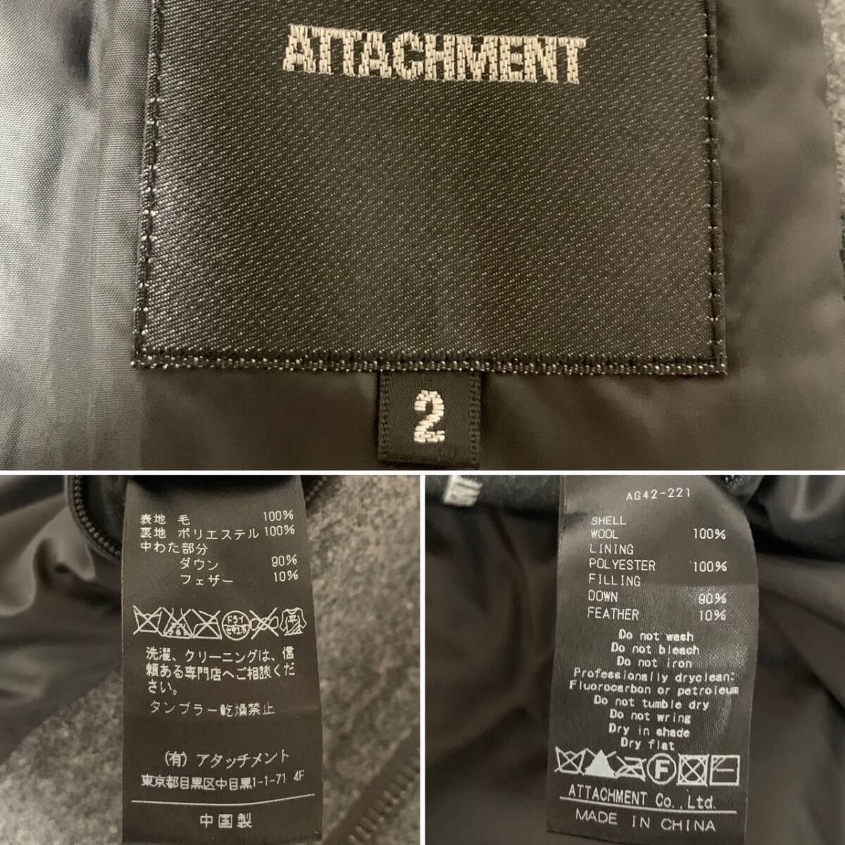 美品☆[ATTACHMENT] 定価71,500 タスマニアカレッジフラノ ウールダウンジャケット テーラード 2 グレー AG42-221 アタッチメント
