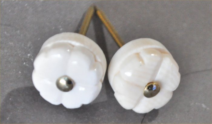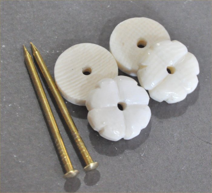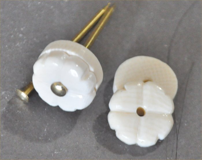 ナンタケットバスケット用のマンモス牙の四つ葉のクローバーノブ16mmサイズは16mm径厚み4mm ワッシャー16mm径厚み4mm磨き仕上げ使いやすい四つ葉のクローバーデザインノブです。